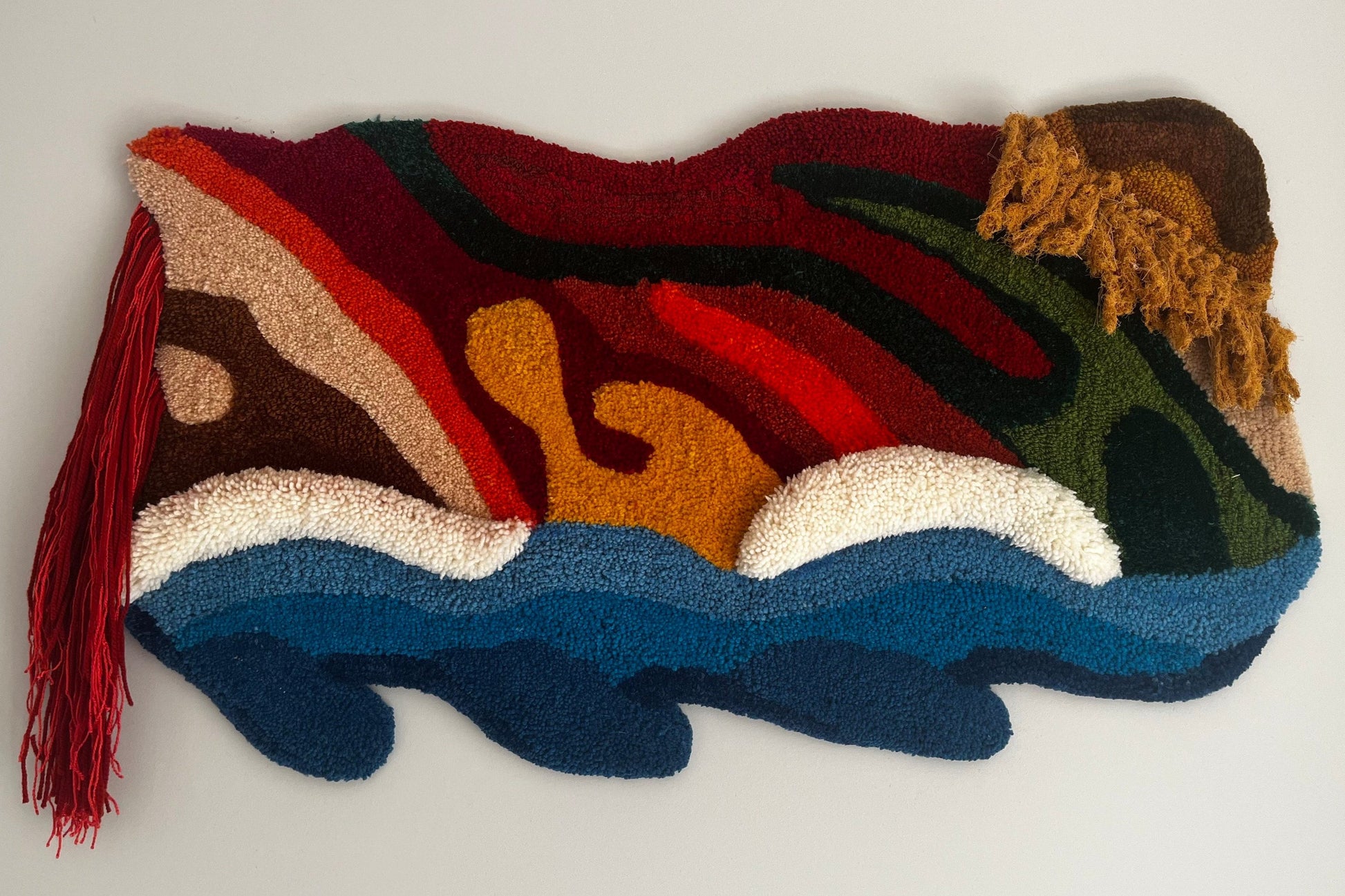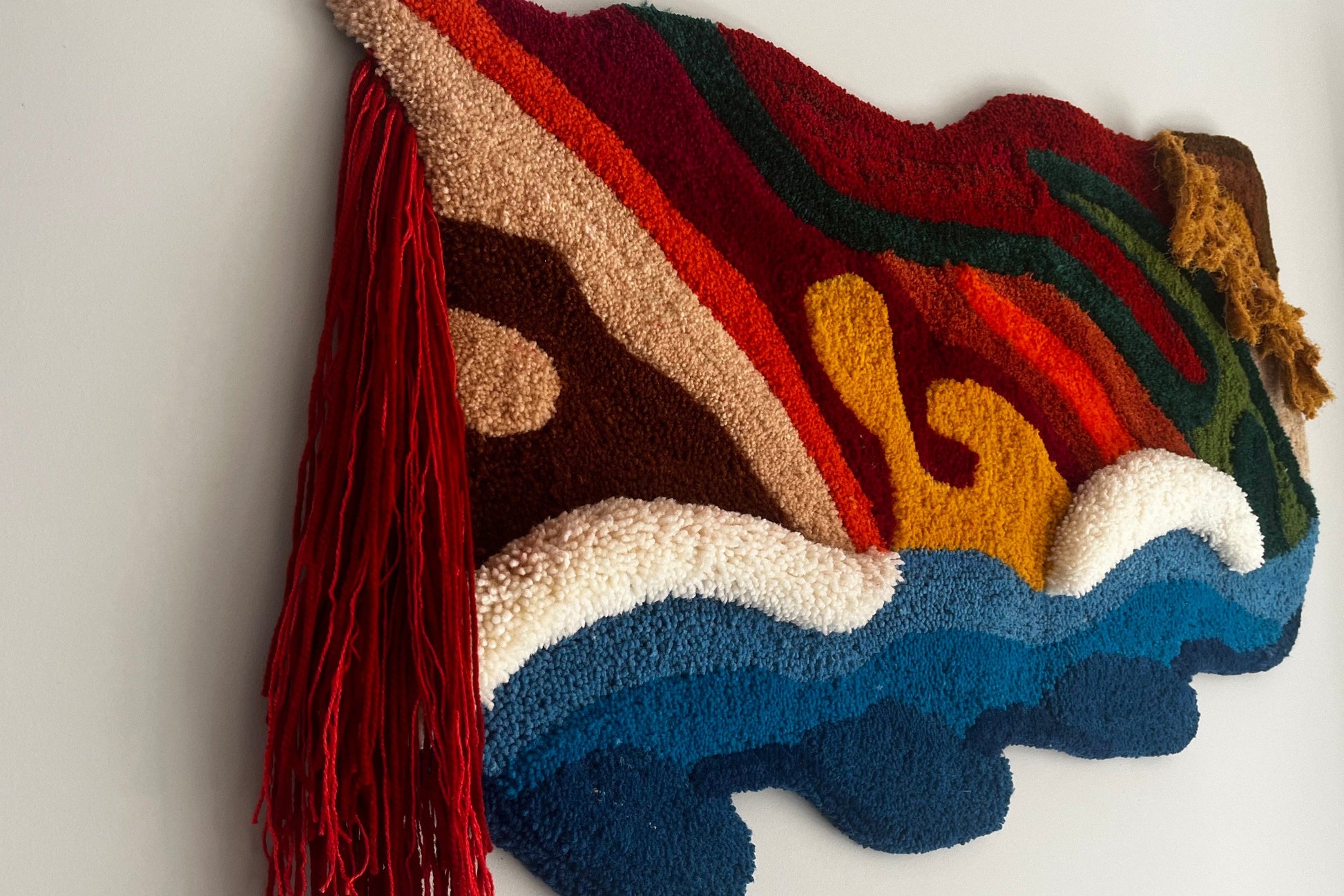You will receive the piece rolled up and in a few minutes it will be unrolled and ready for you to hang.