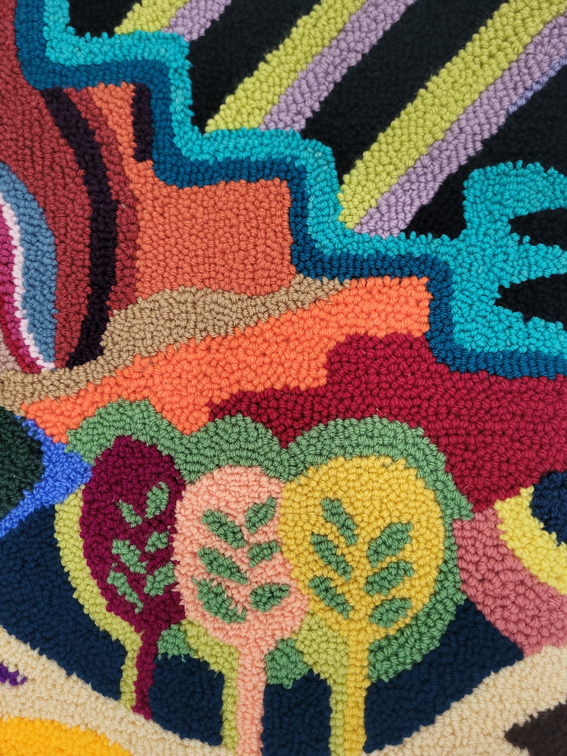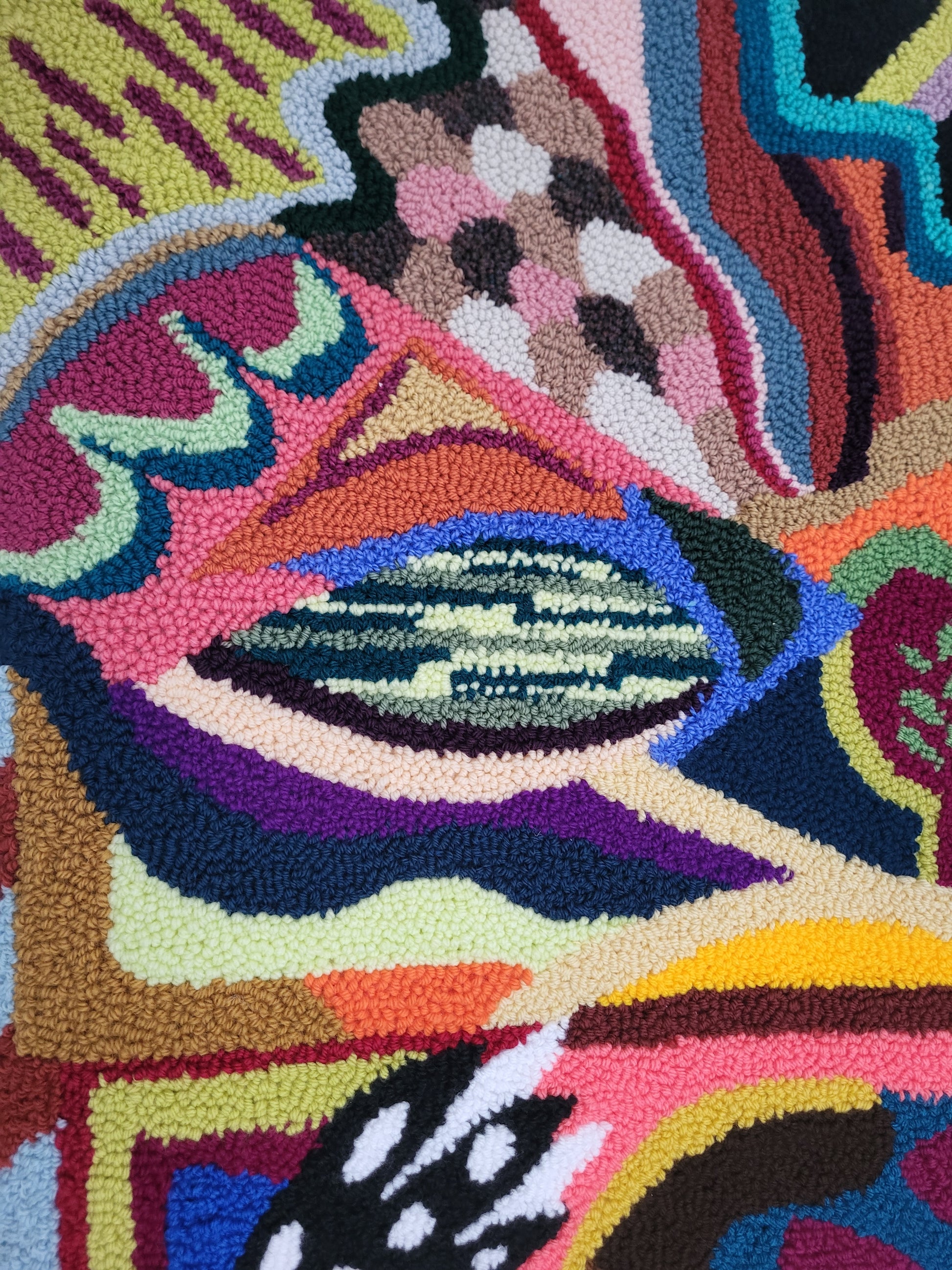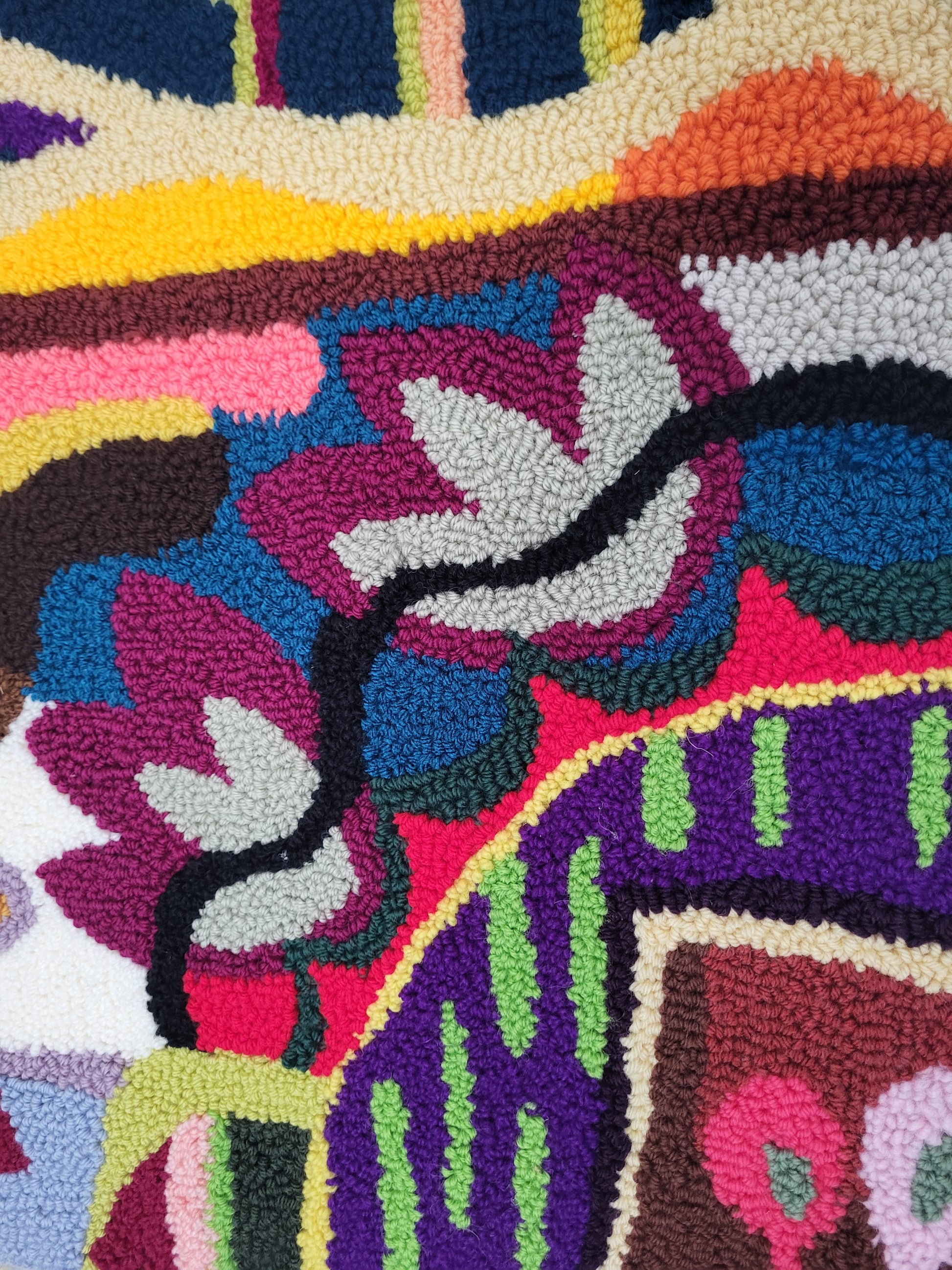 Completely made with the punch needle technique and using 100% wool and acrylic.