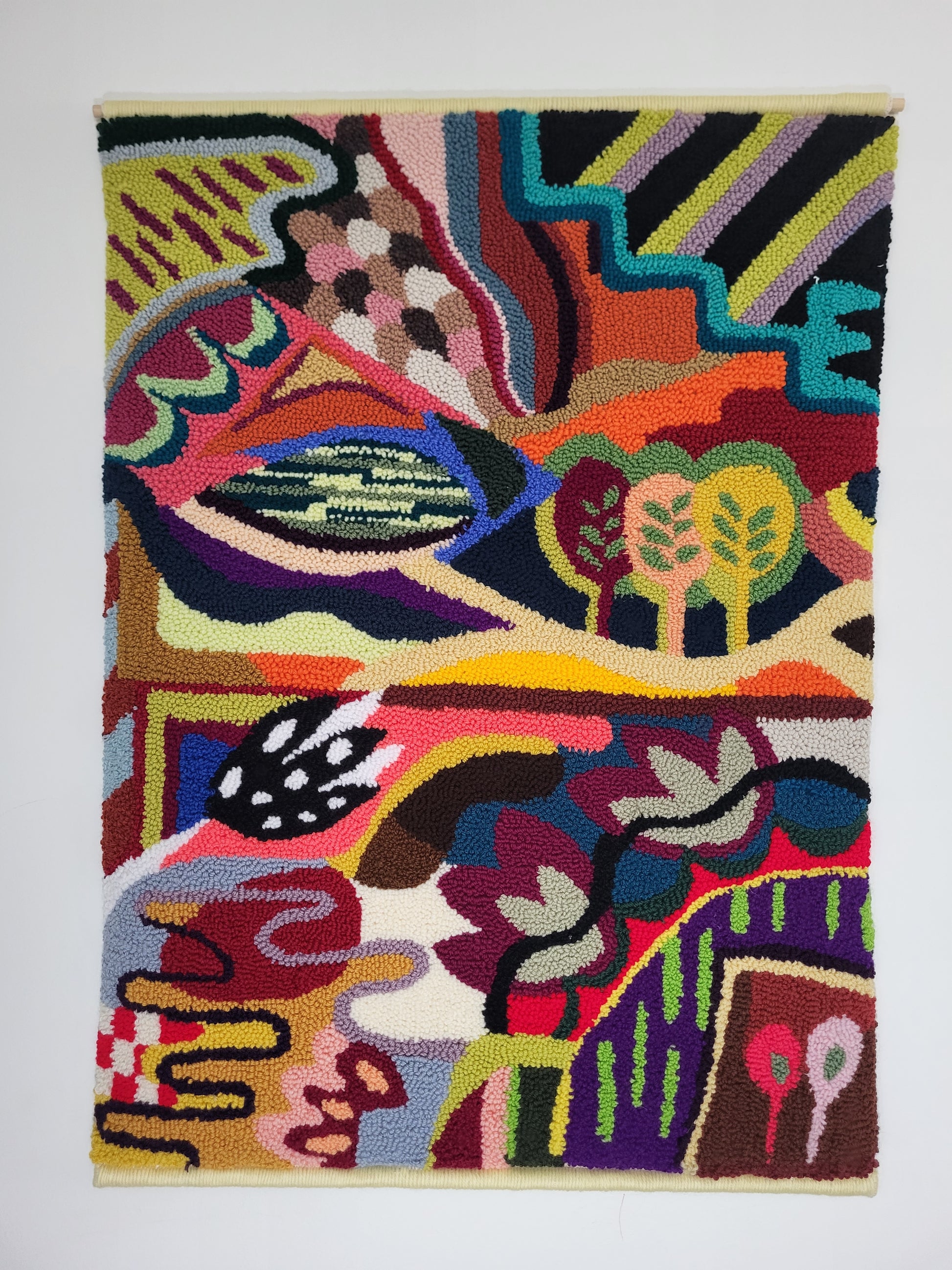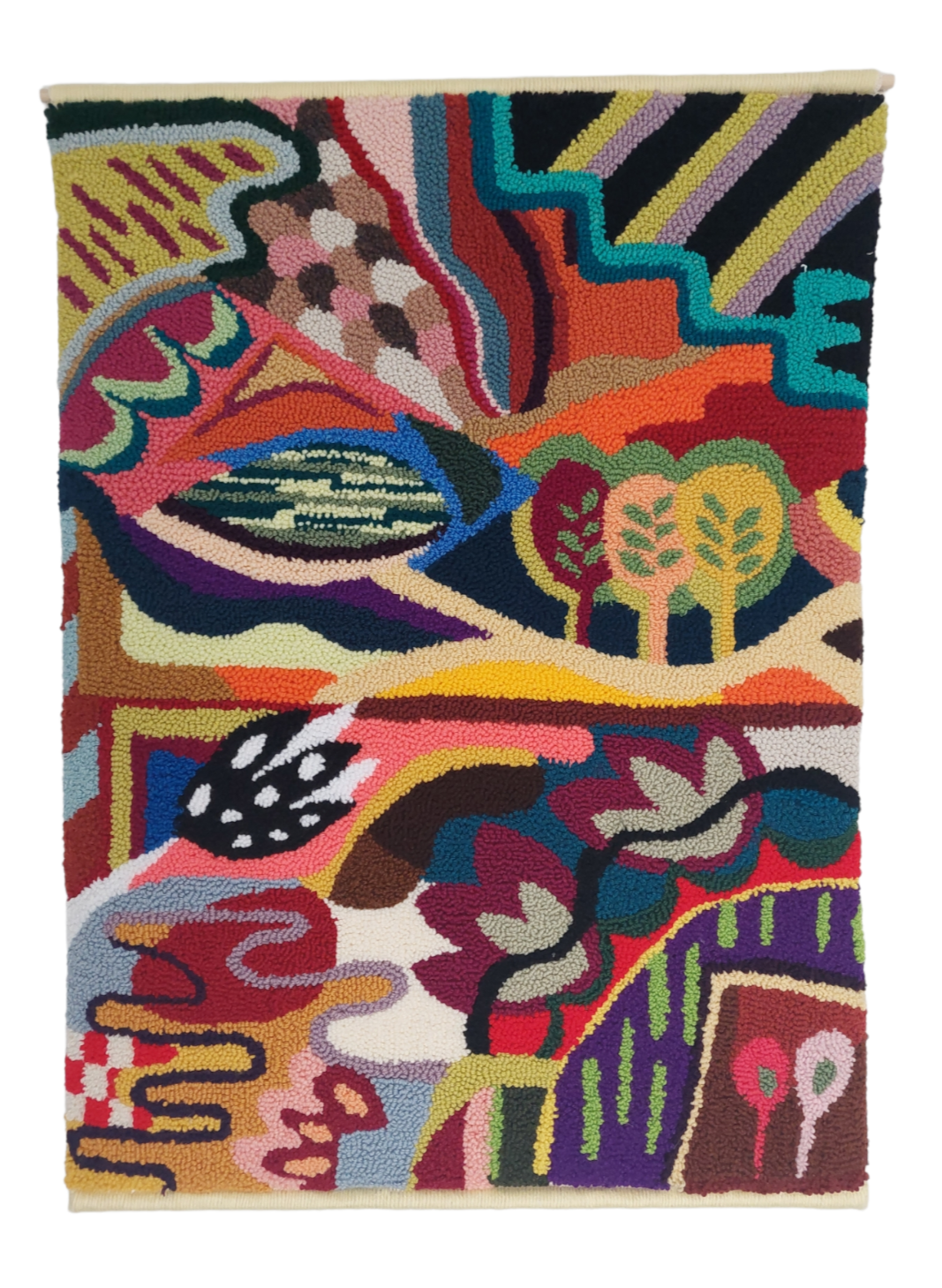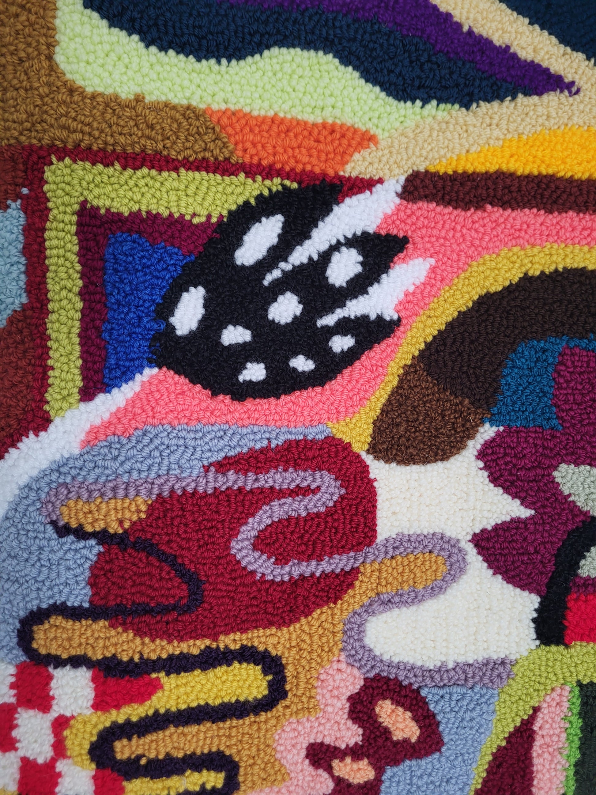 Completely made with the punch needle technique and using 100% wool and acrylic.