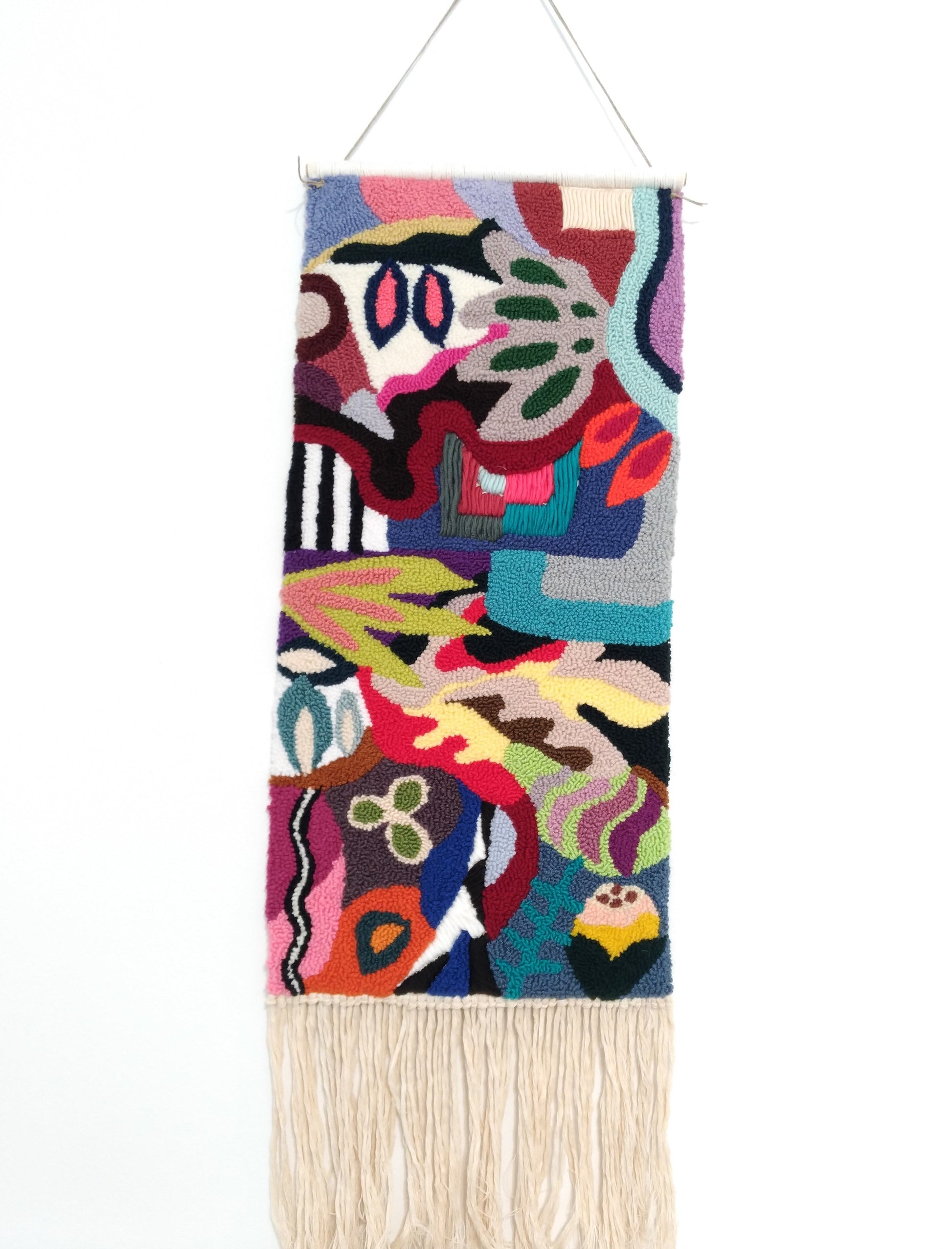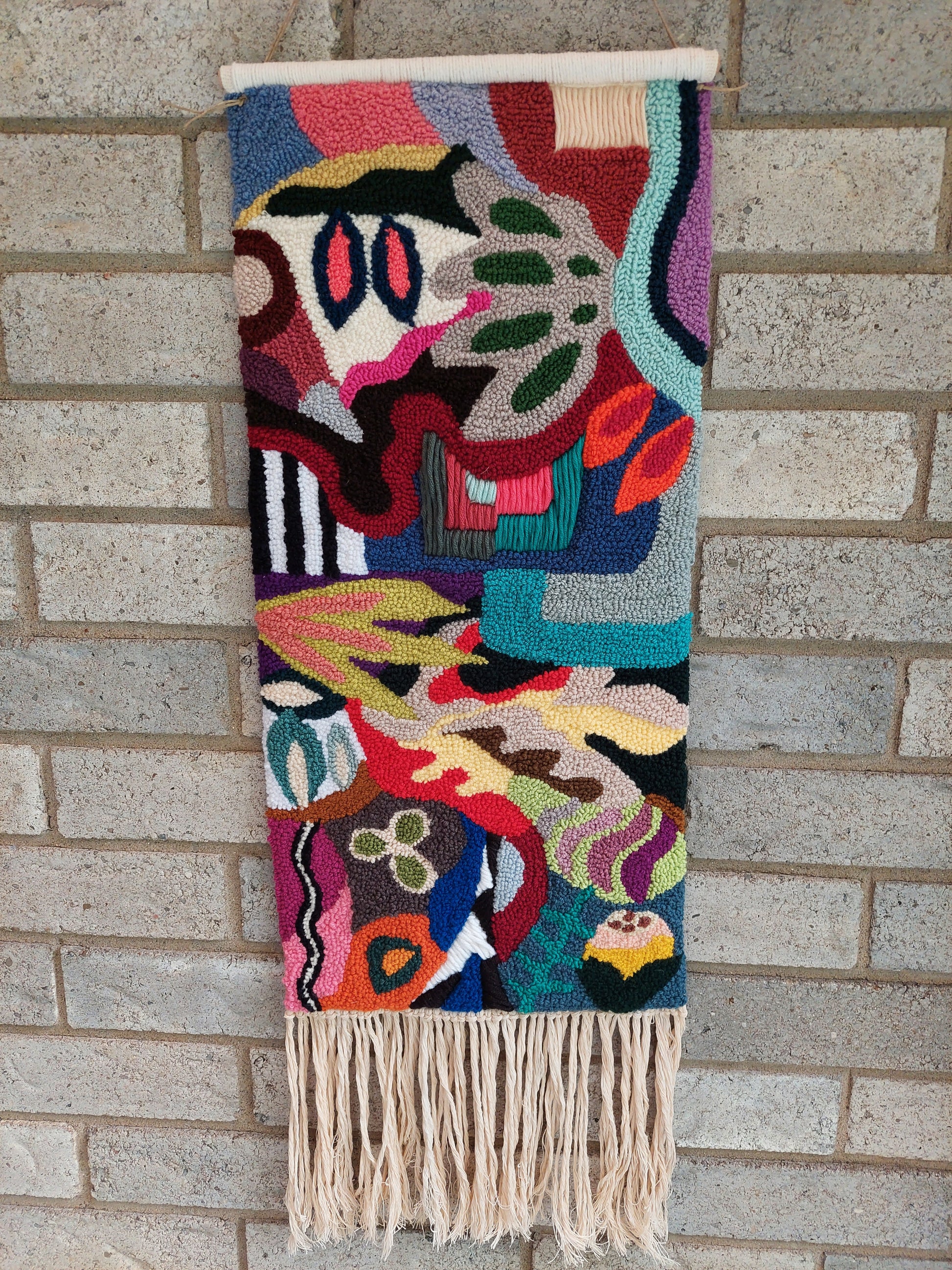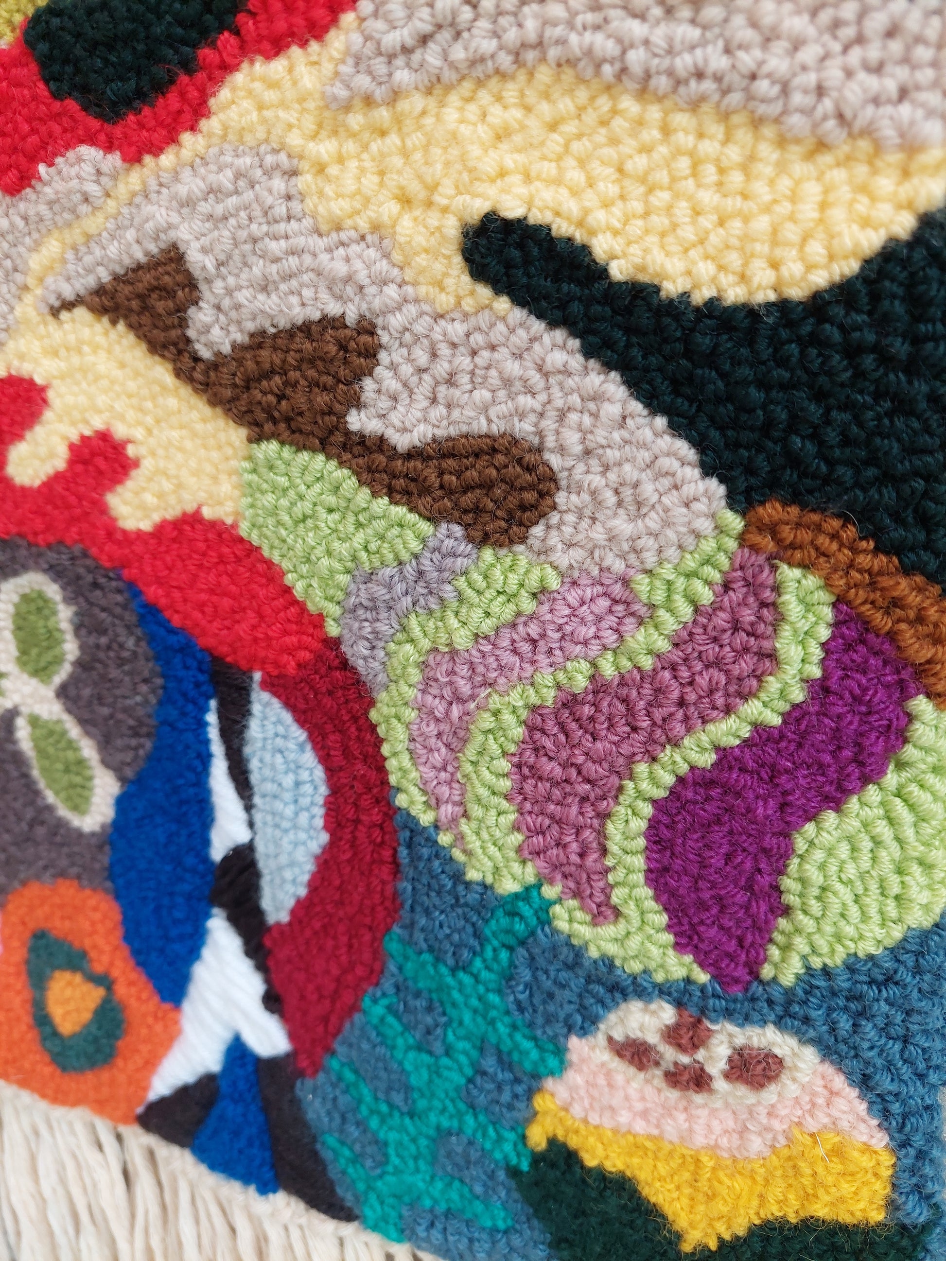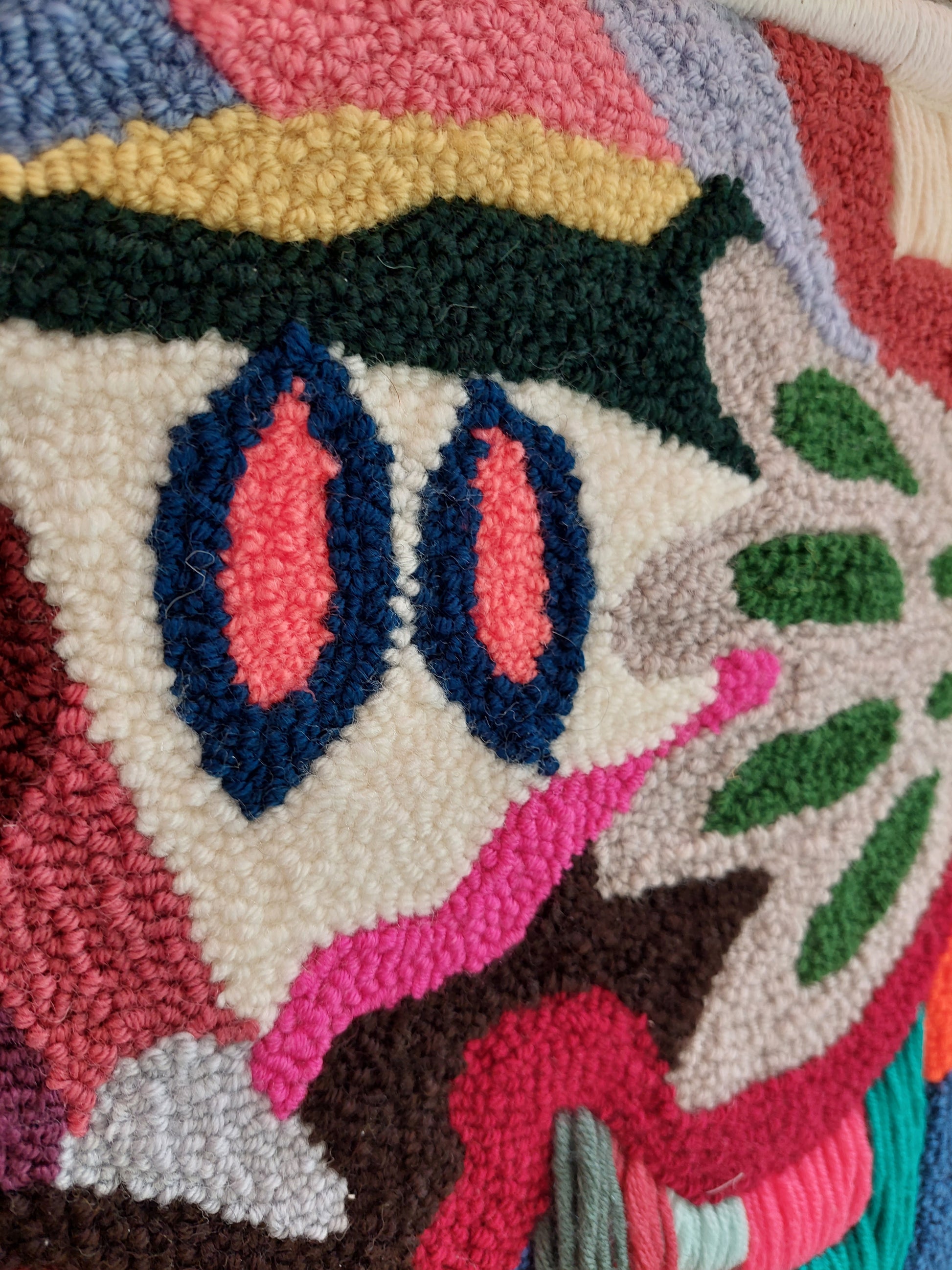 A wall rug with cheerful colors that will make a difference in your space. This wall rug is completely handmade using the punch needle technique. This wall rug be placed on corners or on narrow walls. It makes all the difference in decoration.
