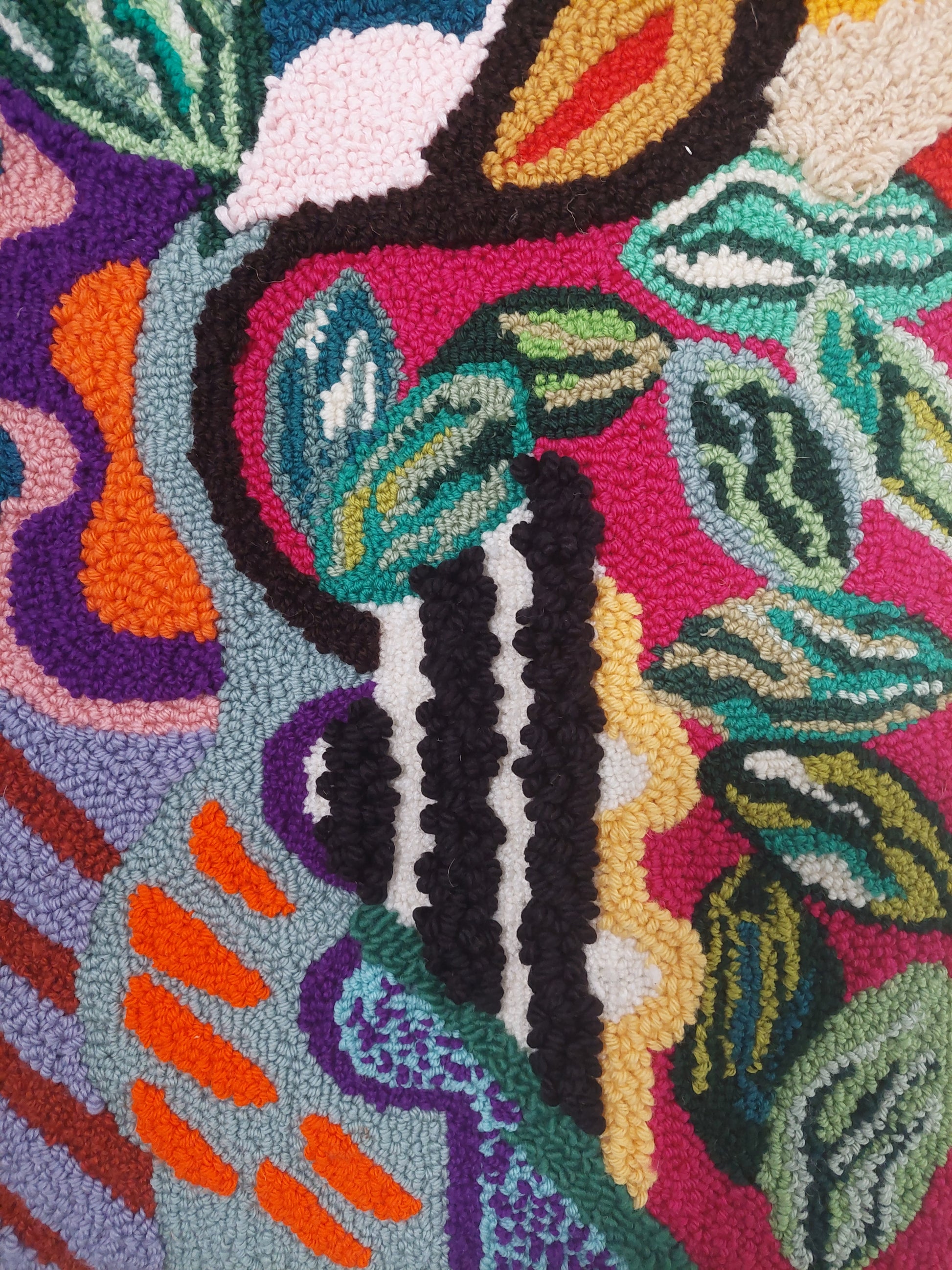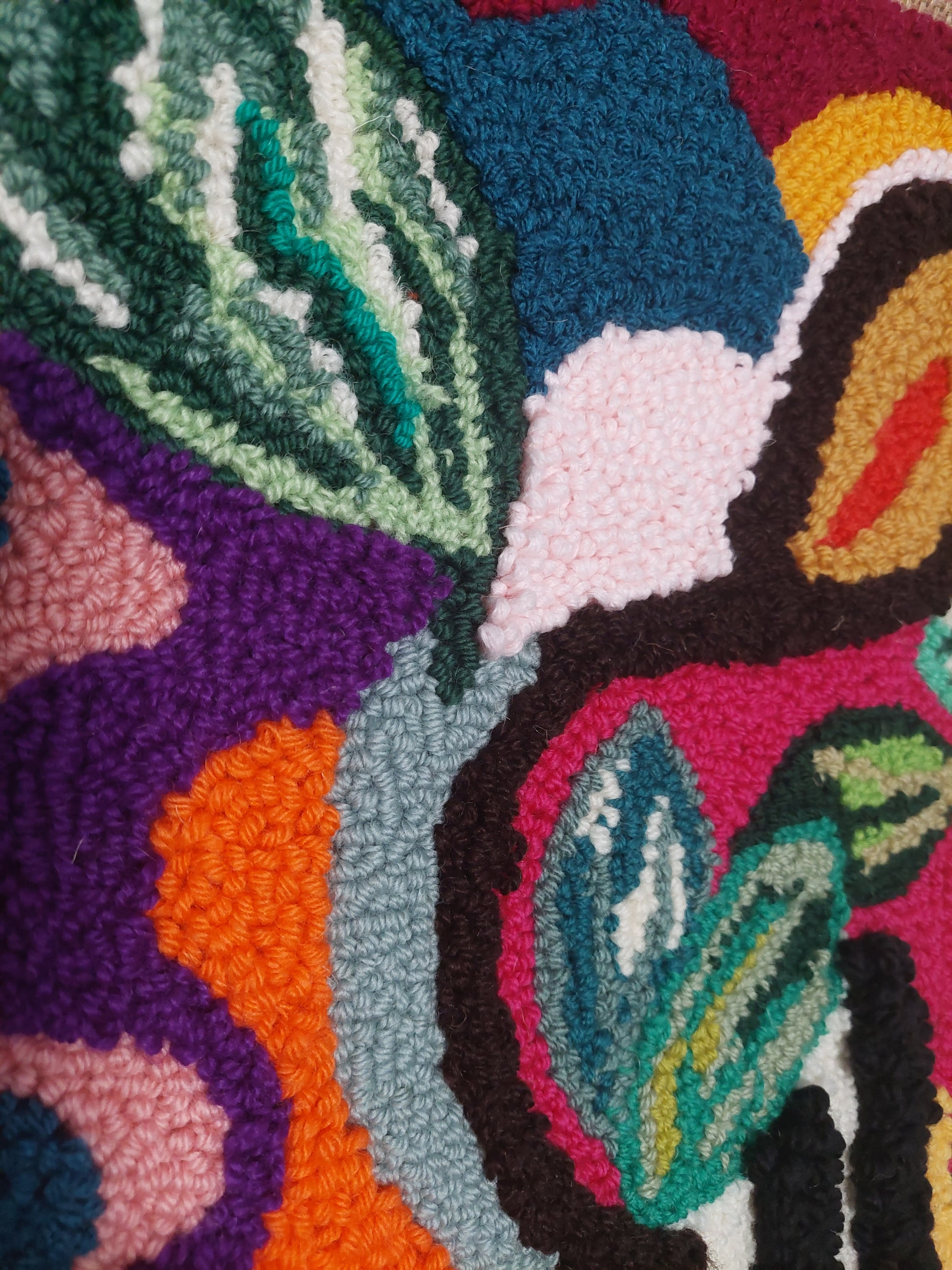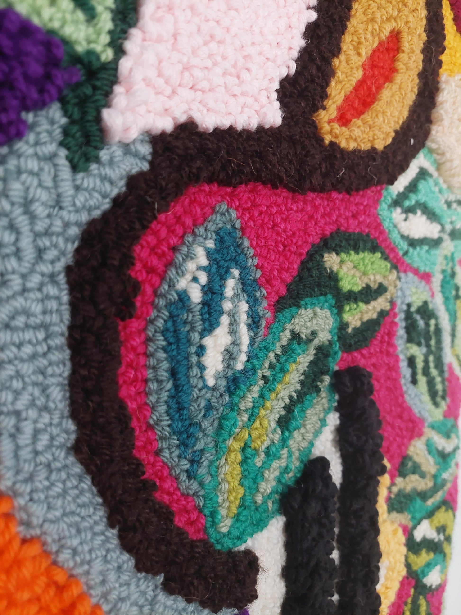 This rug was embroidered in a jute fabric with a special weave called arraiolo, a traditional embroidery technique used by Portuguese embroiderers.