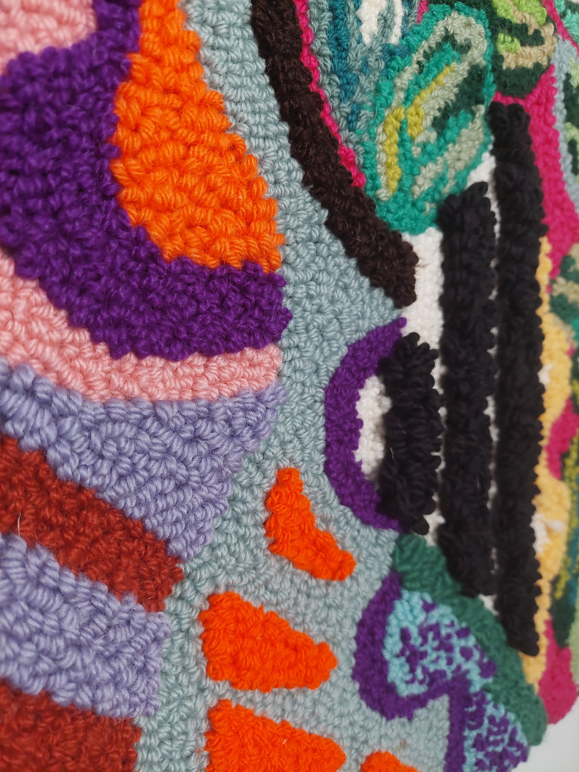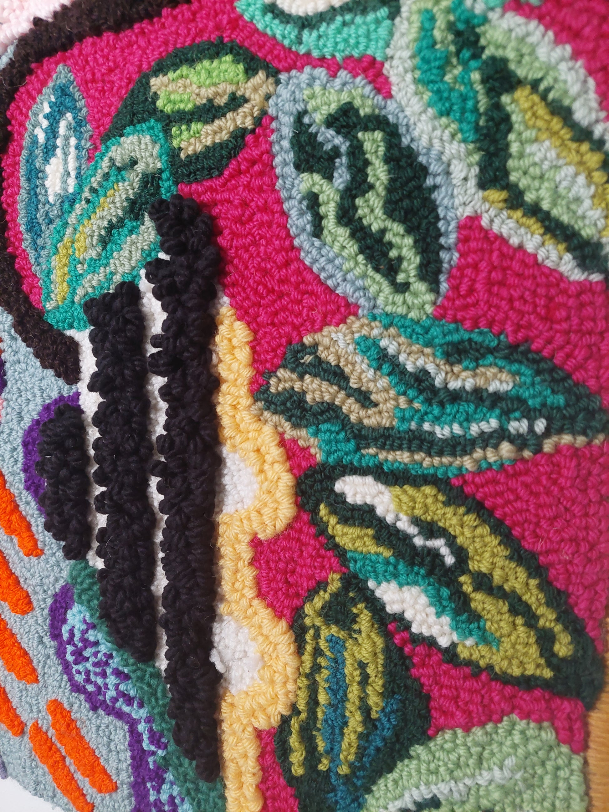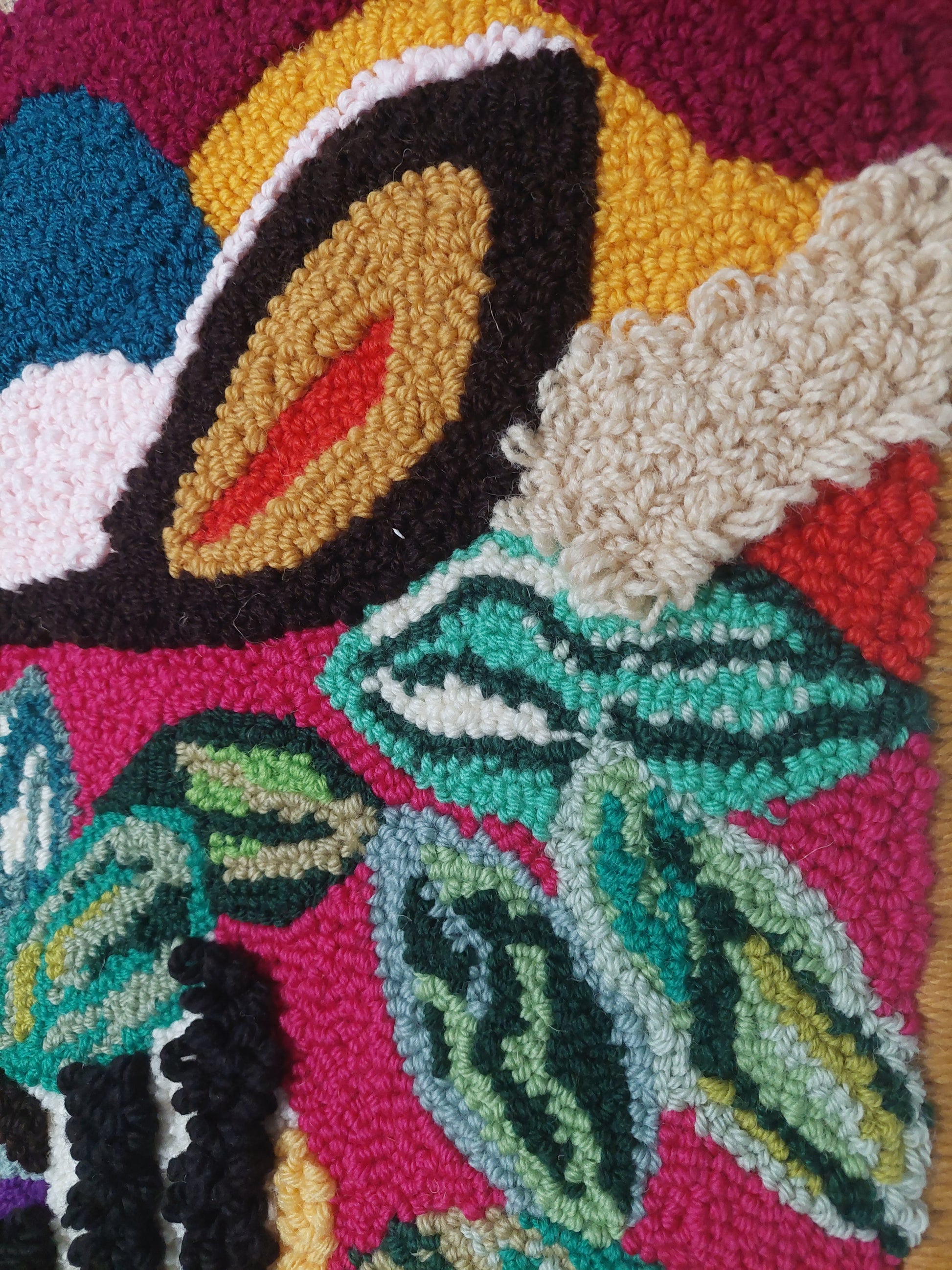 This rug was embroidered in a jute fabric with a special weave called arraiolo, a traditional embroidery technique used by Portuguese embroiderers.