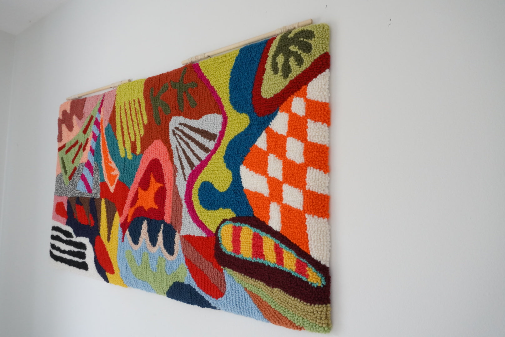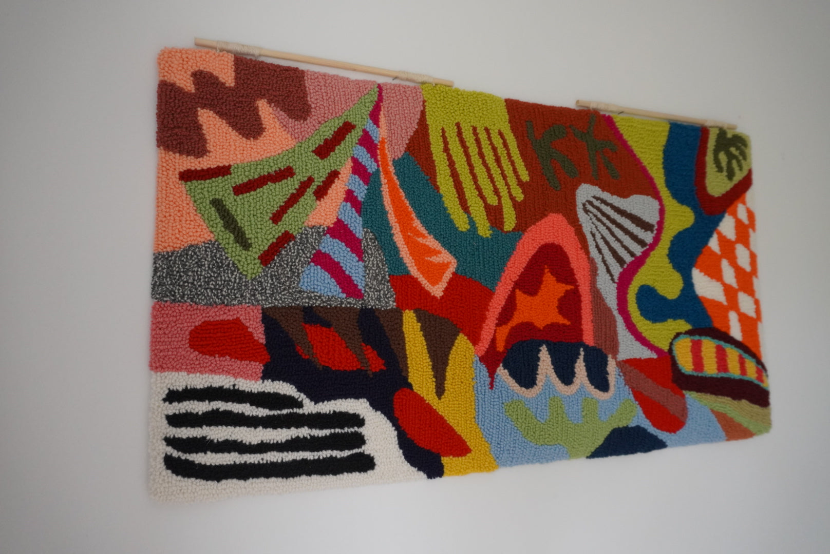 It looks like an amazing rug! The graffiti style approach with lots of shapes and colors should make it a unique and vibrant work of art. It's fascinating to incorporate the boldness and creativity of graffiti into the world of textiles and rugs. I'm sure the creation will add a bold and artistic touch to any space in which it is placed. It's fantastic work!