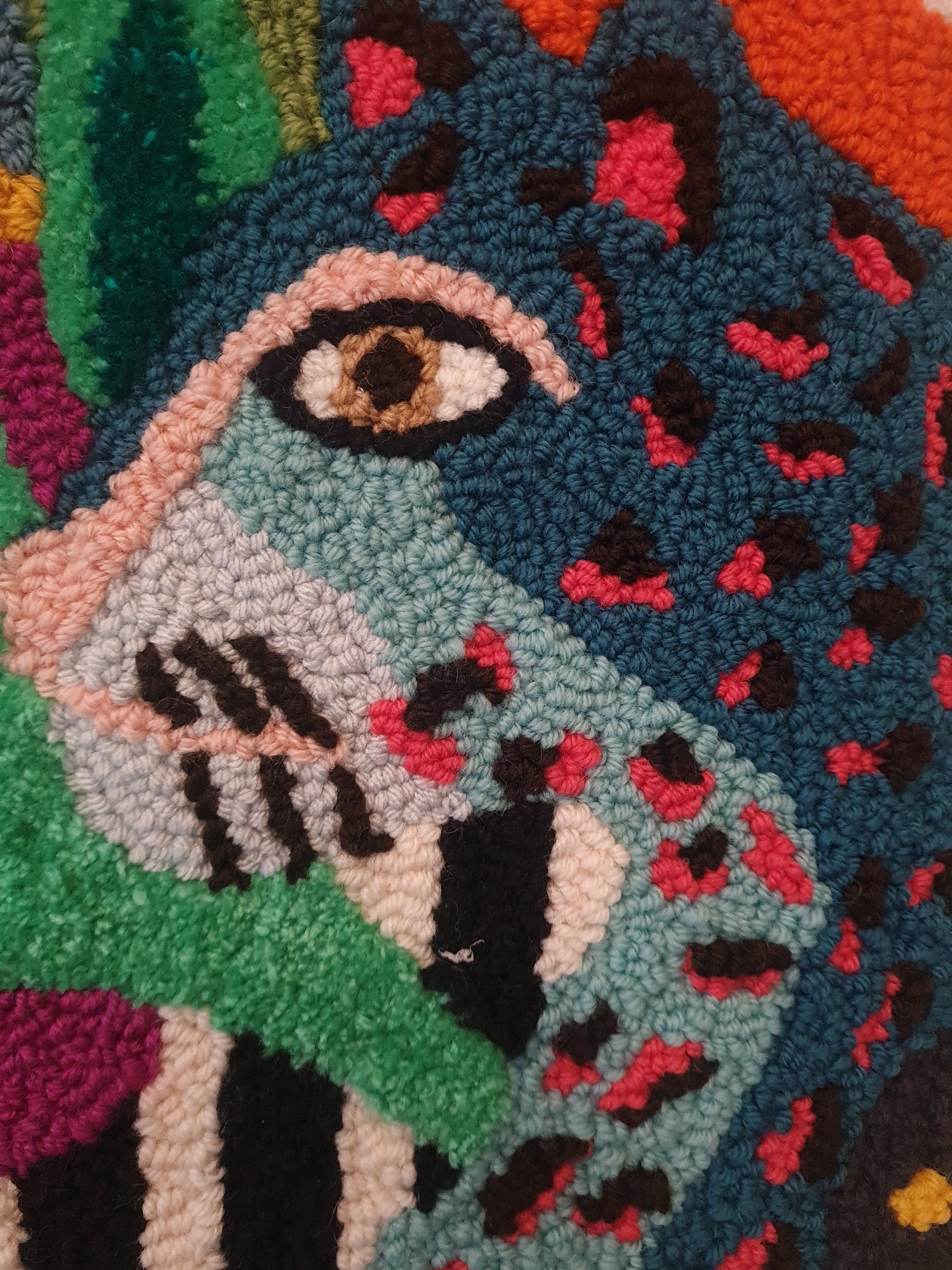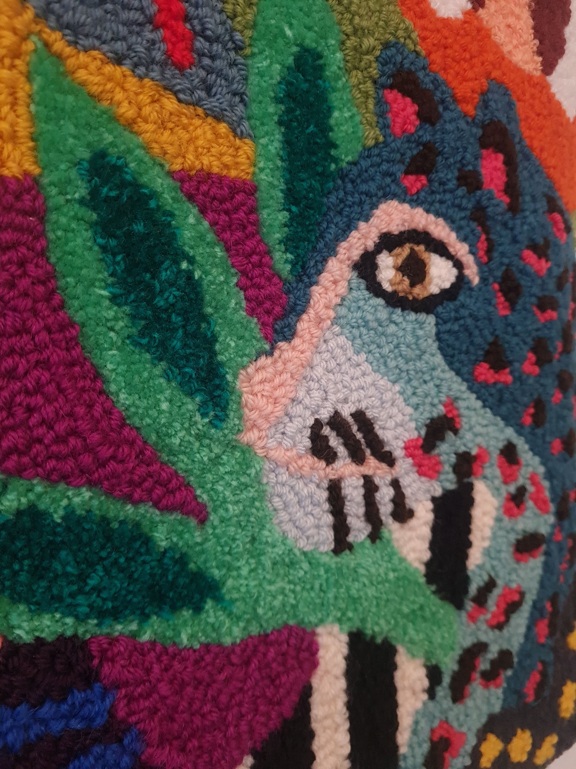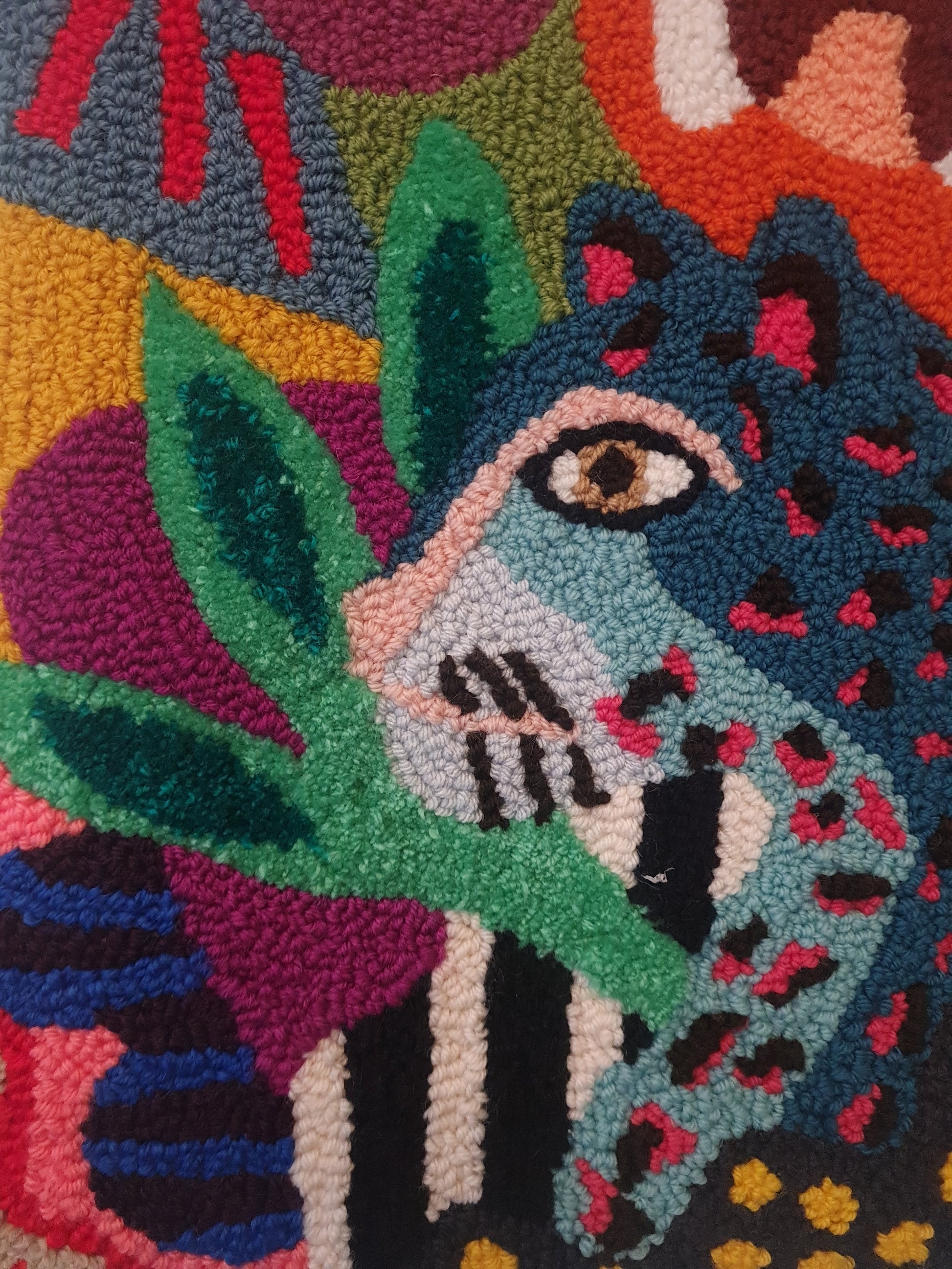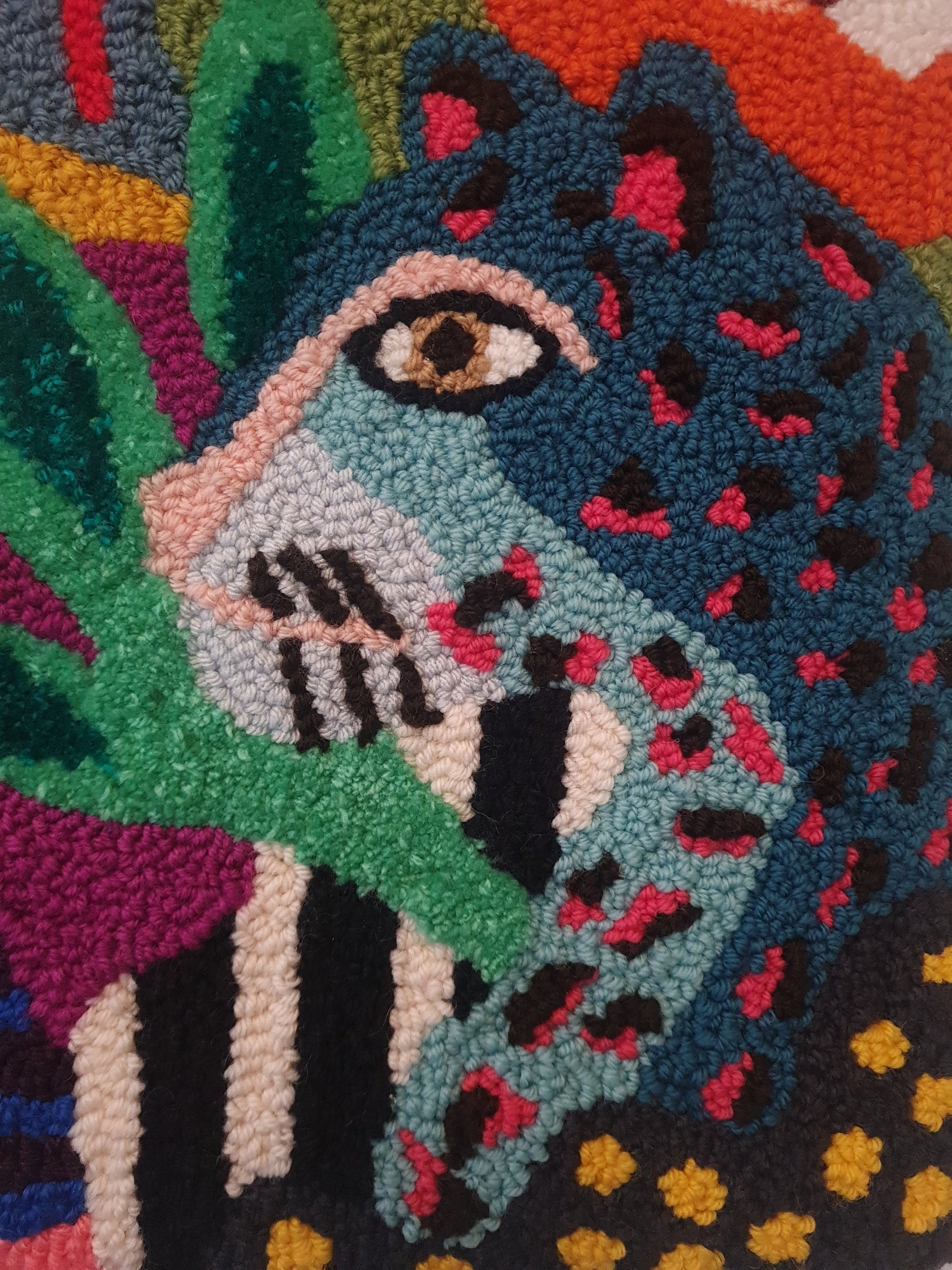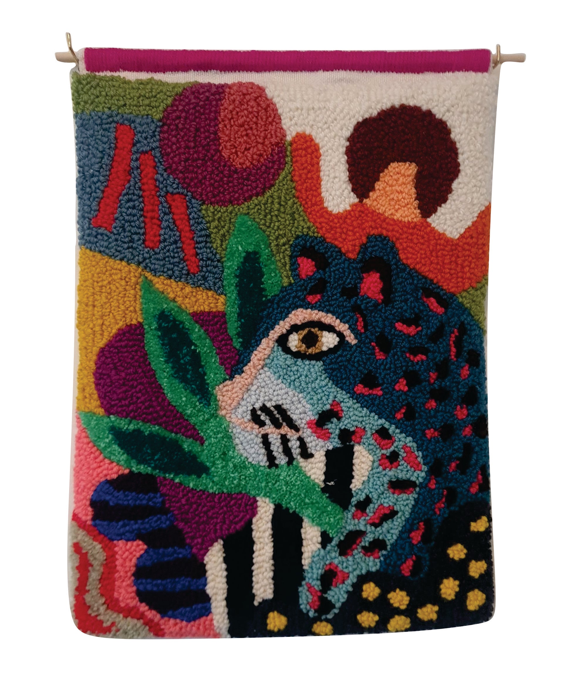 Jaguar modern and colorful wall rug. You can use it in different environments such as living room, office decor, hall decor.