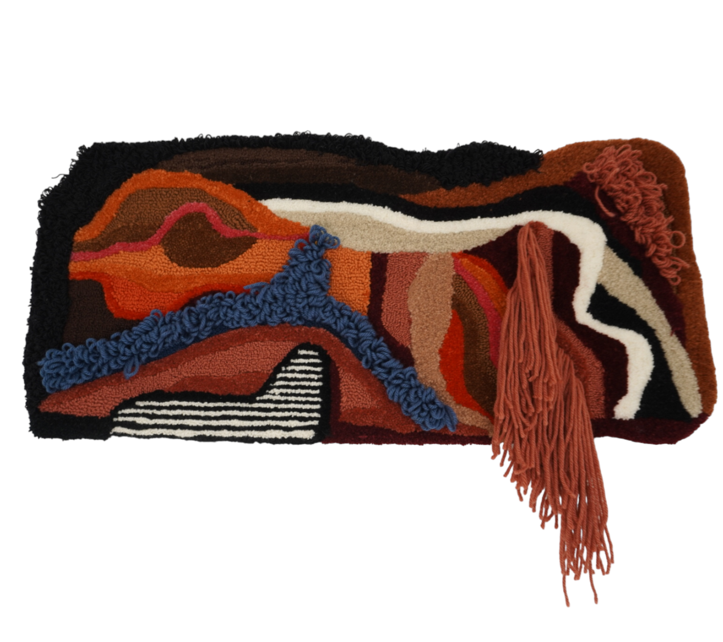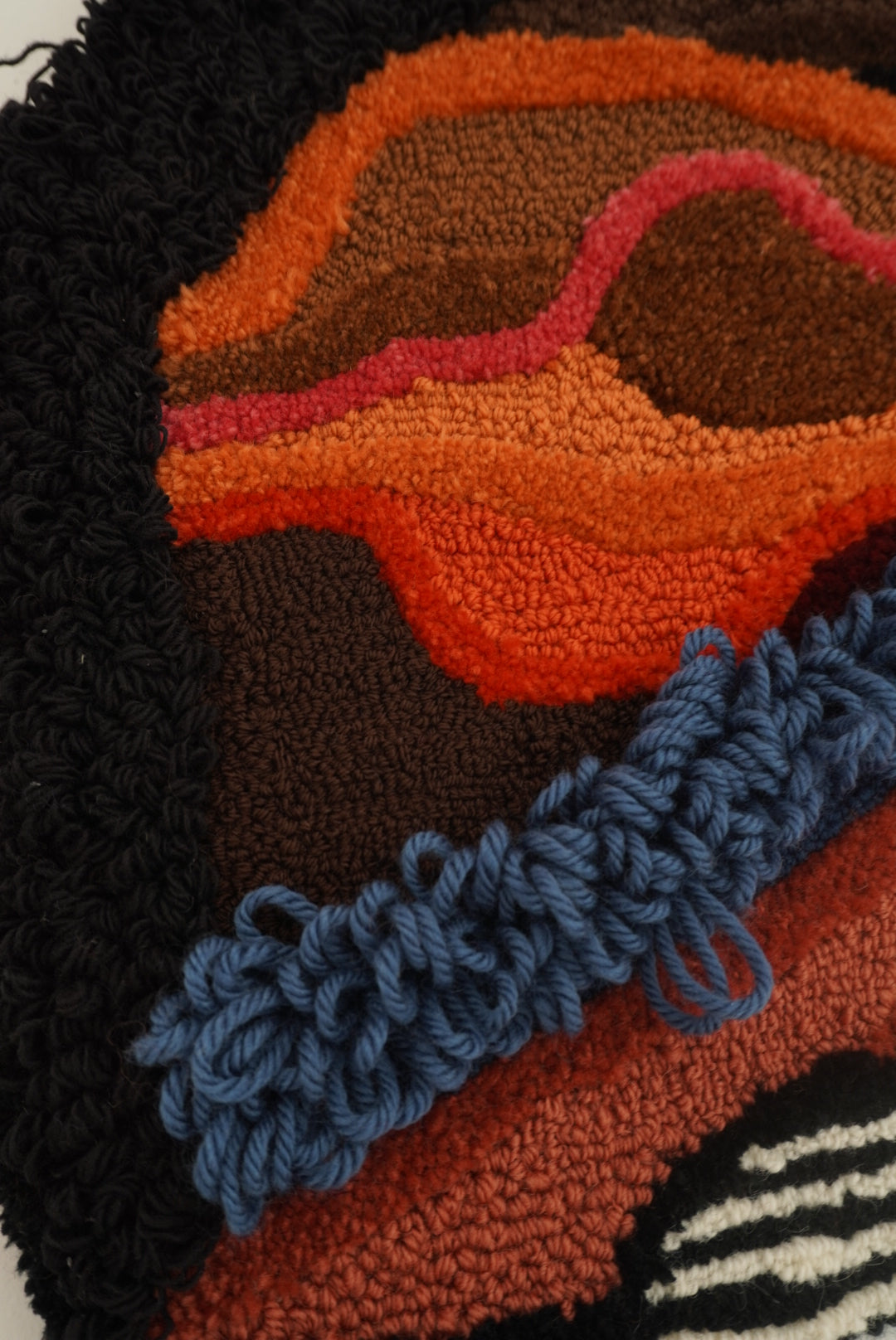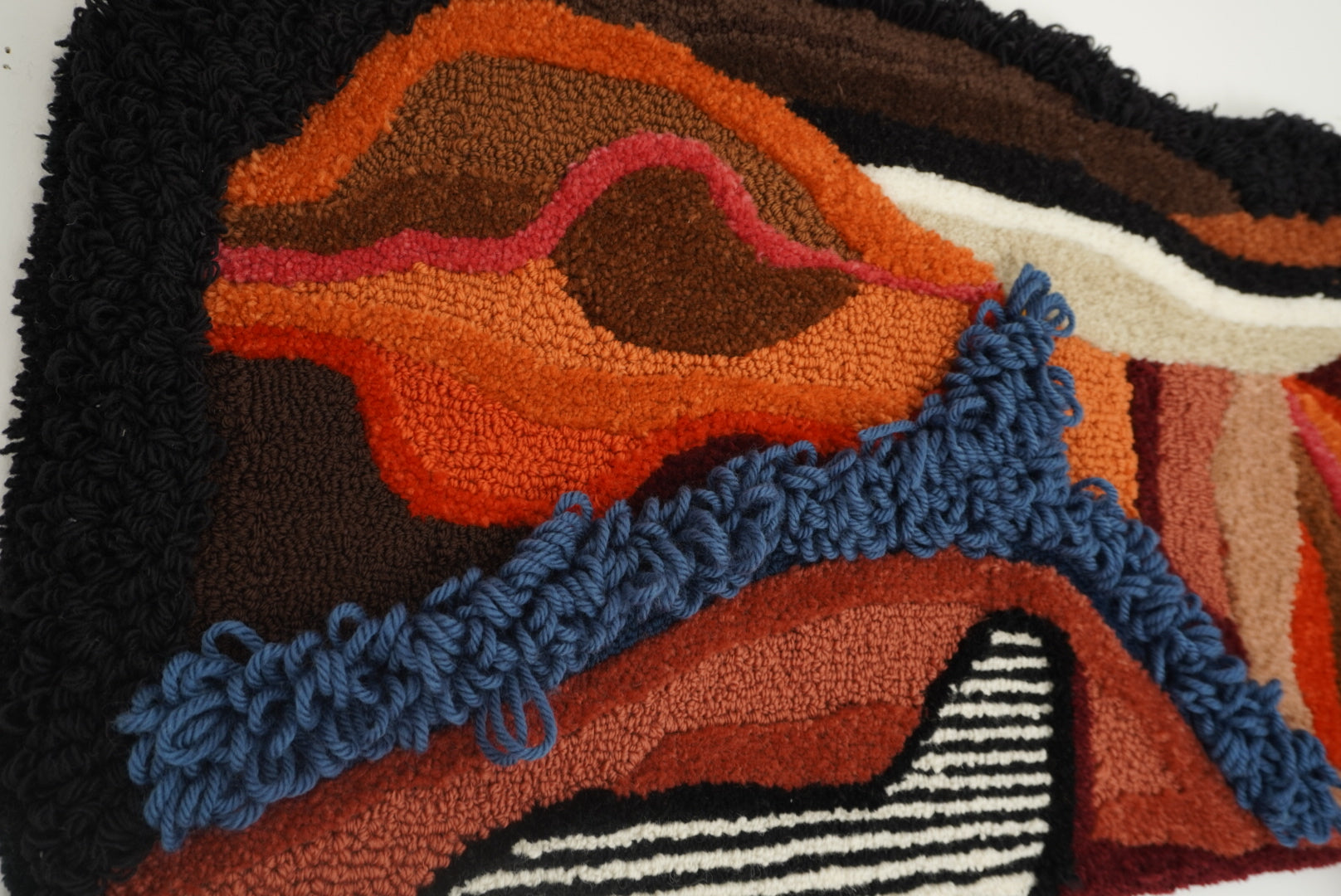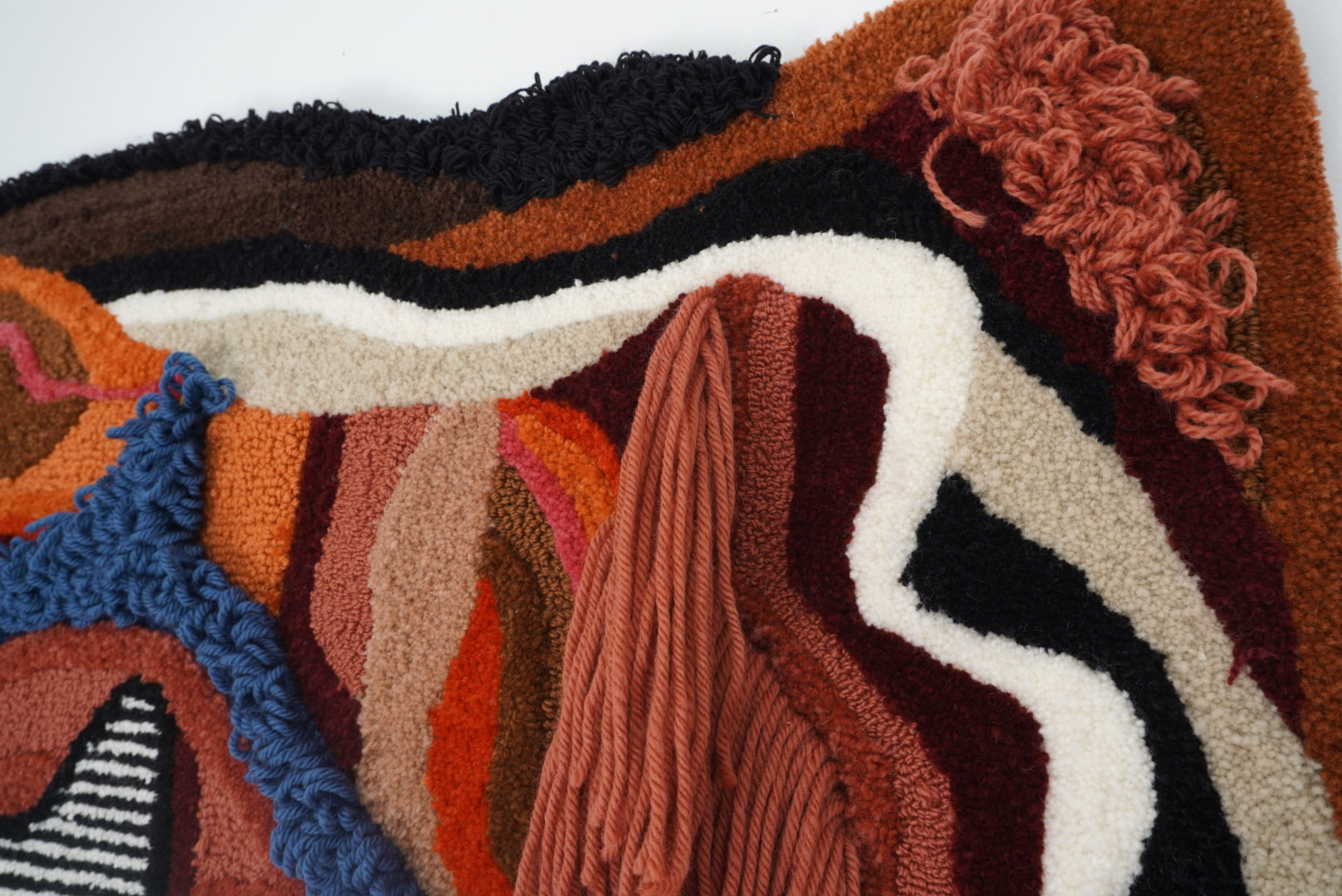 An enchanting wall tufting rug that seamlessly merges the timeless elegance of black and white with the vibrant energy of more intense colors, all while embracing the captivating allure of organic forms.