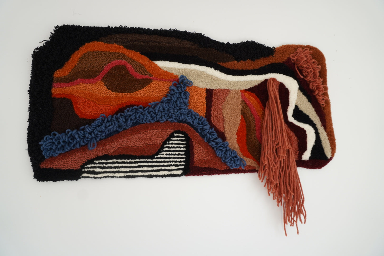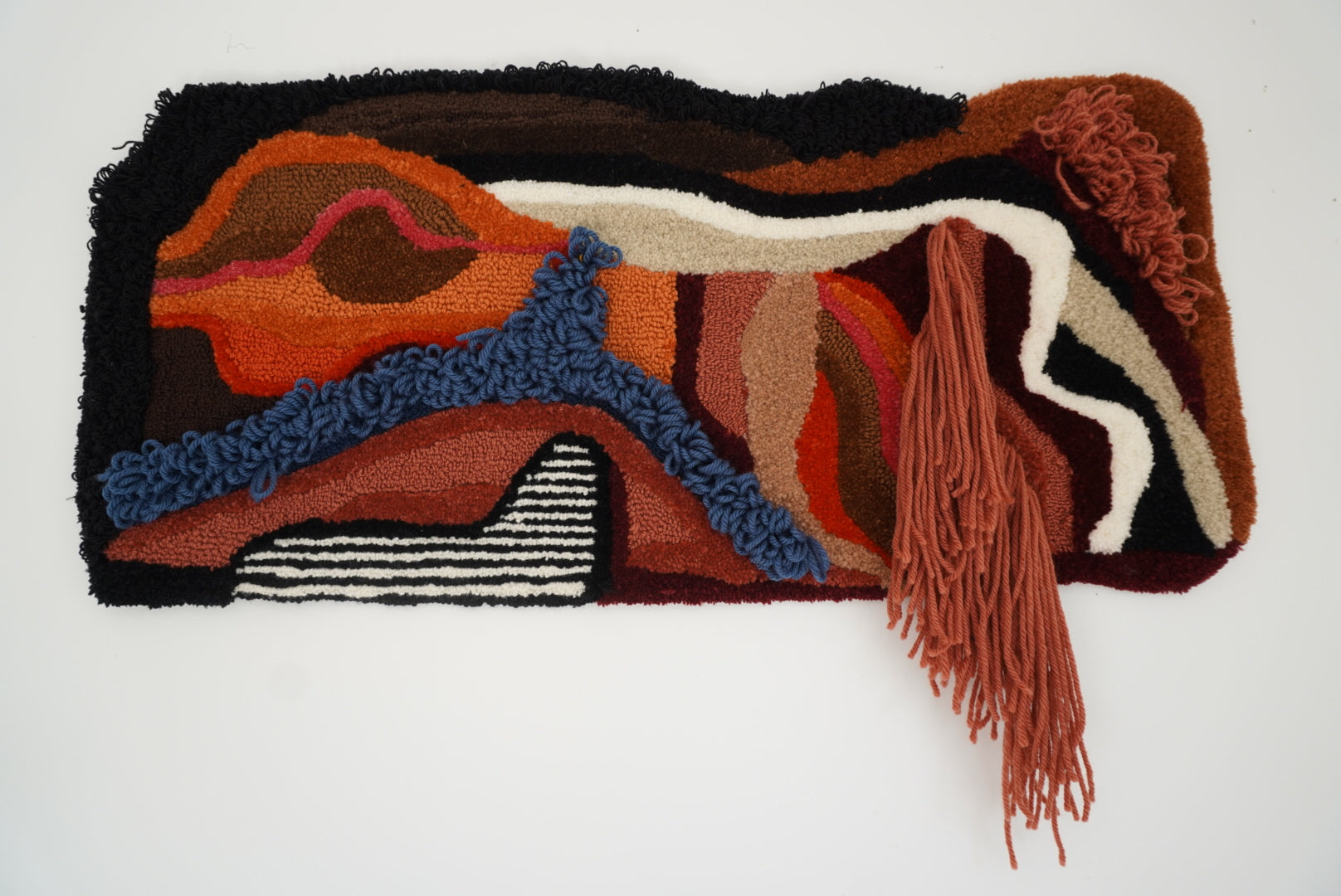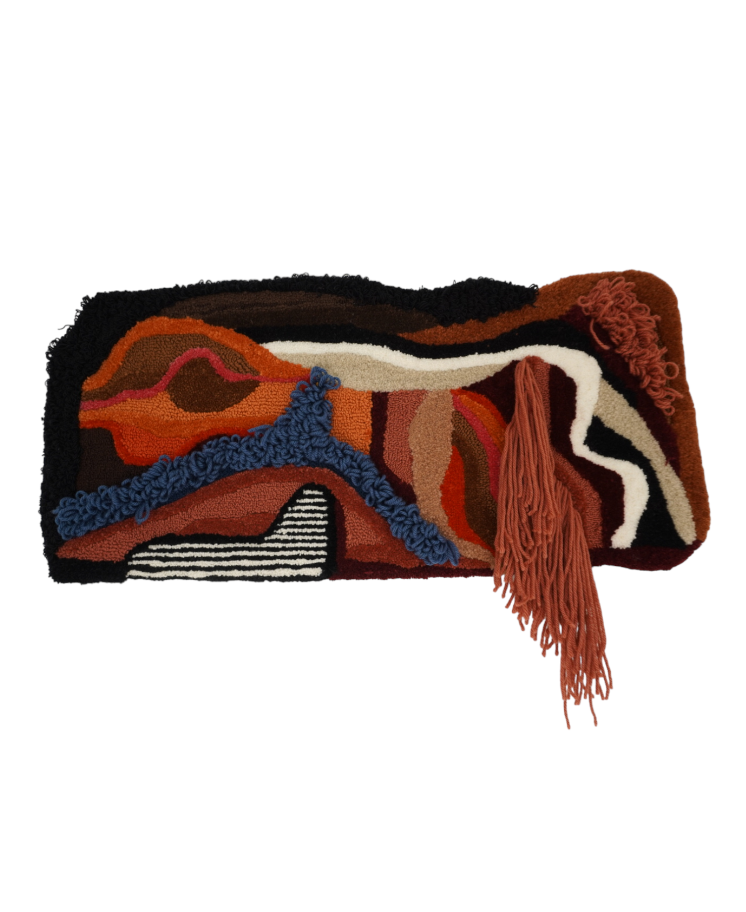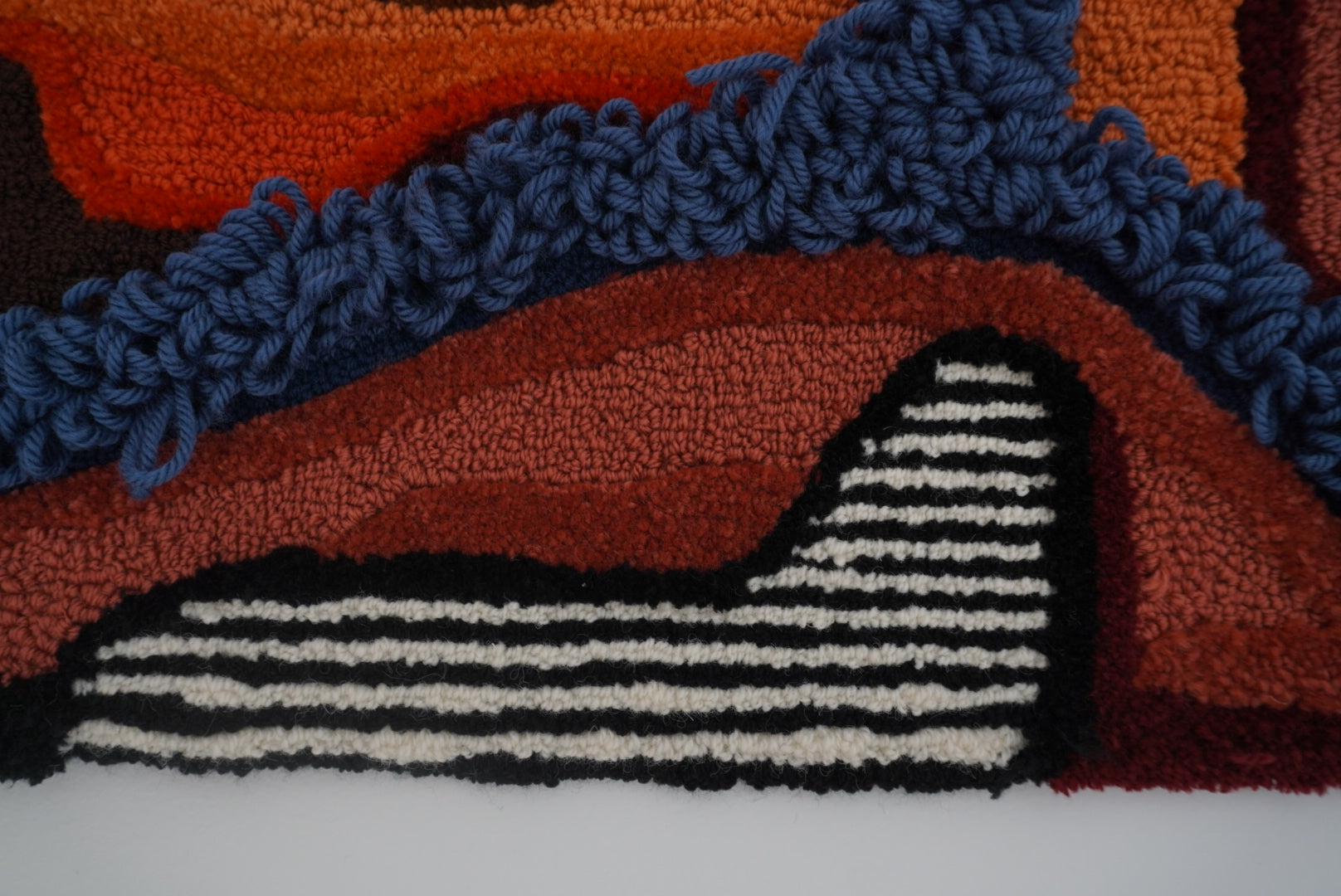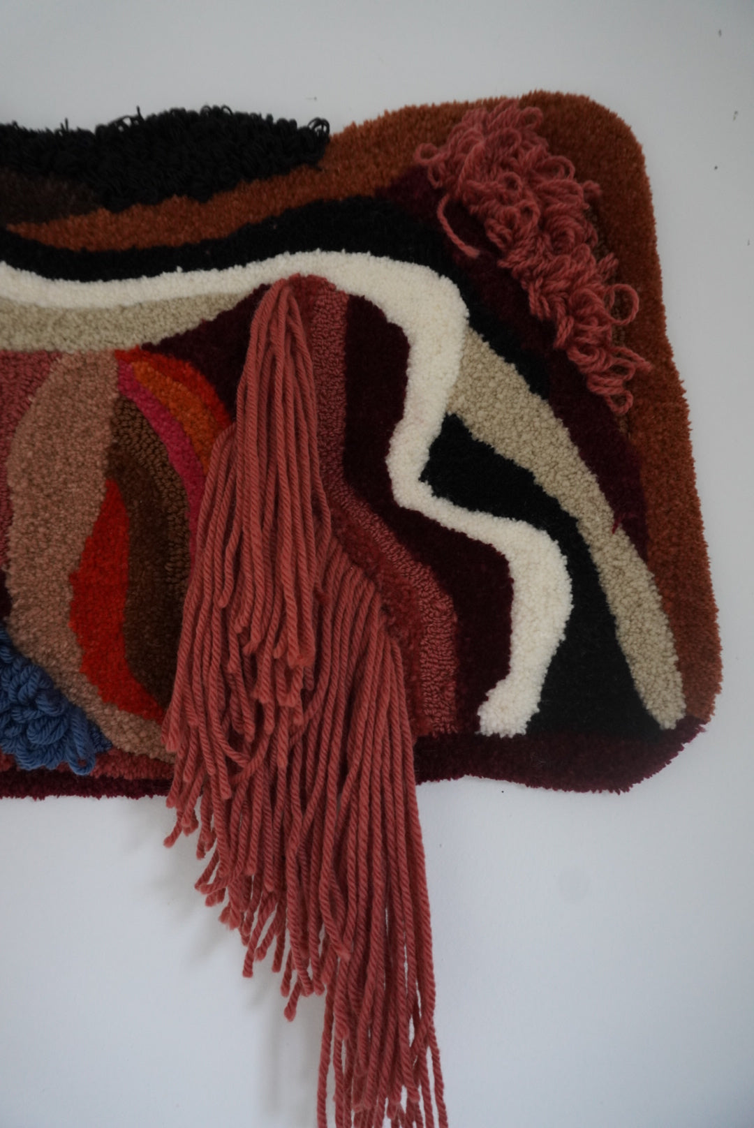 An enchanting wall tufting rug that seamlessly merges the timeless elegance of black and white with the vibrant energy of more intense colors, all while embracing the captivating allure of organic forms.
