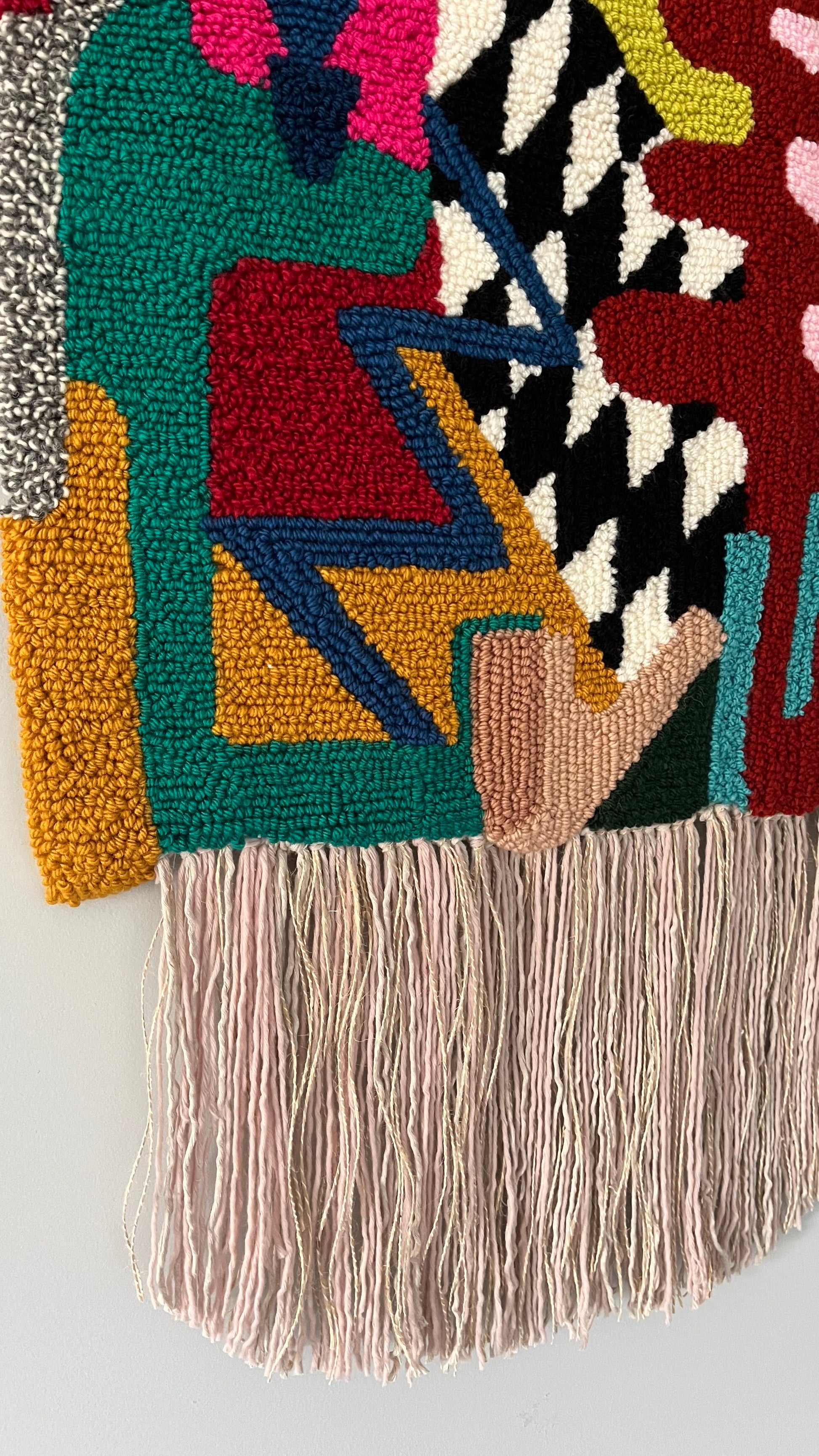 This punch needle wall hanging is a true work of art. With a vibrant color palette, it features shapes and patterns ranging from geometric, organic and figurative, creating a unique piece full of energy. Its three-dimensional texture adds a sensorial touch, making it not only visually striking, but also pleasant to the touch. Handcrafted with patience and skill, each rug reflects the beauty of traditional art adapted to contemporary design, ideal for any style of decoration.