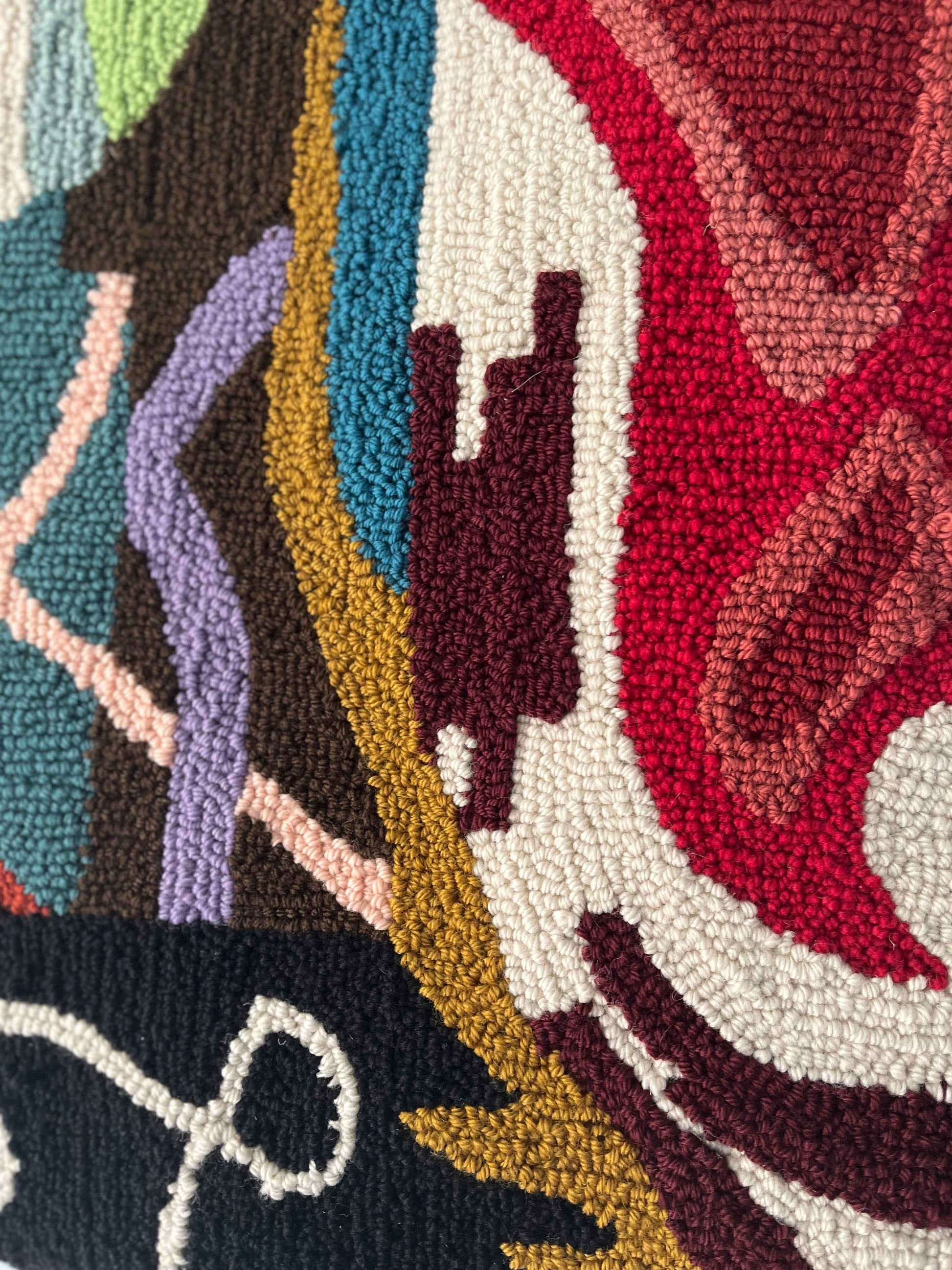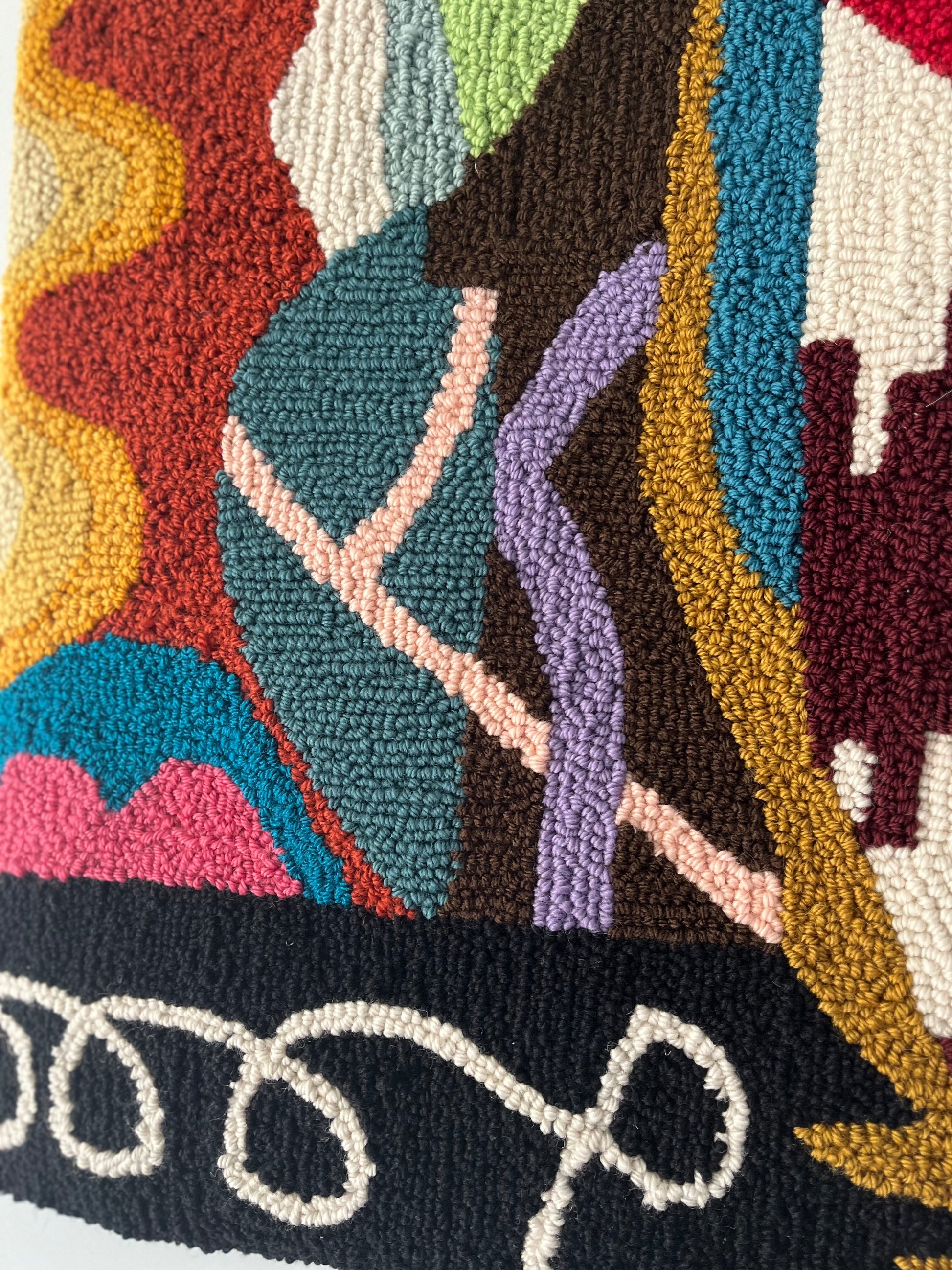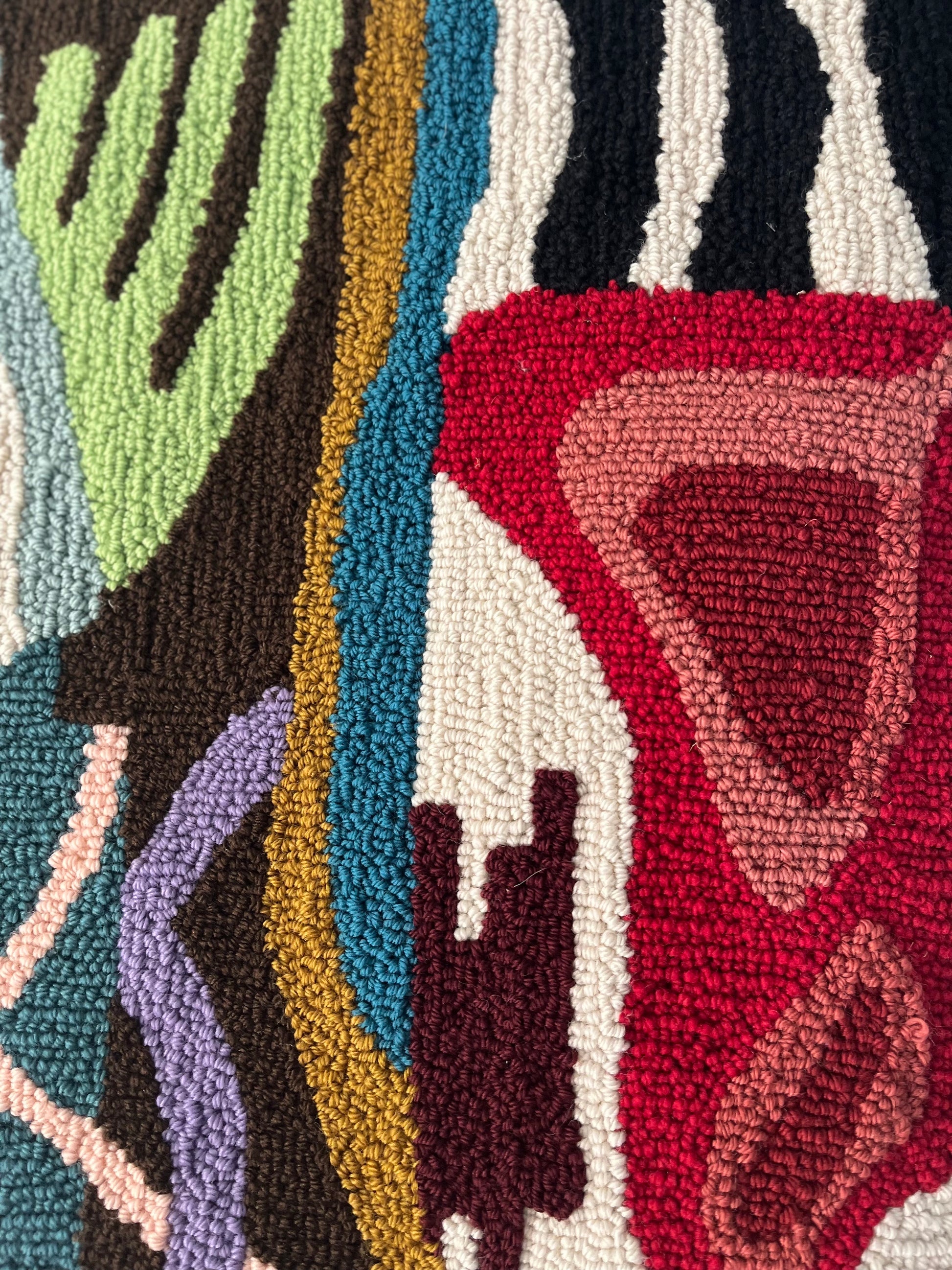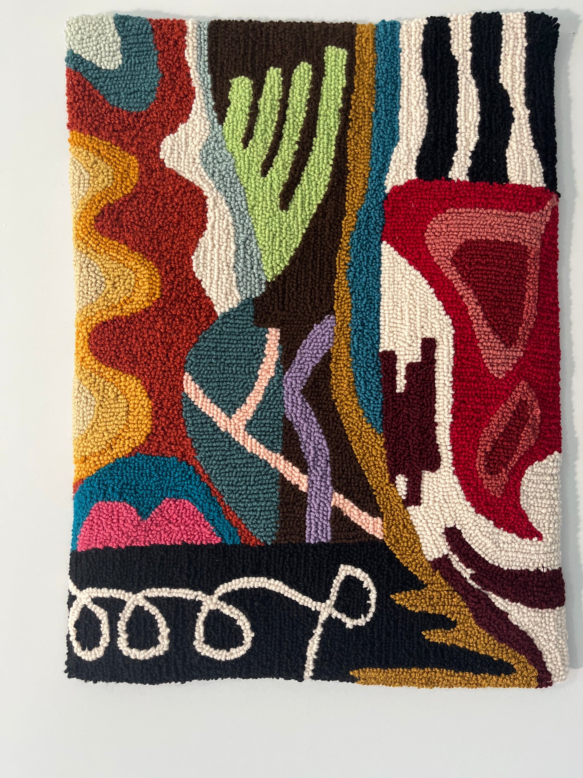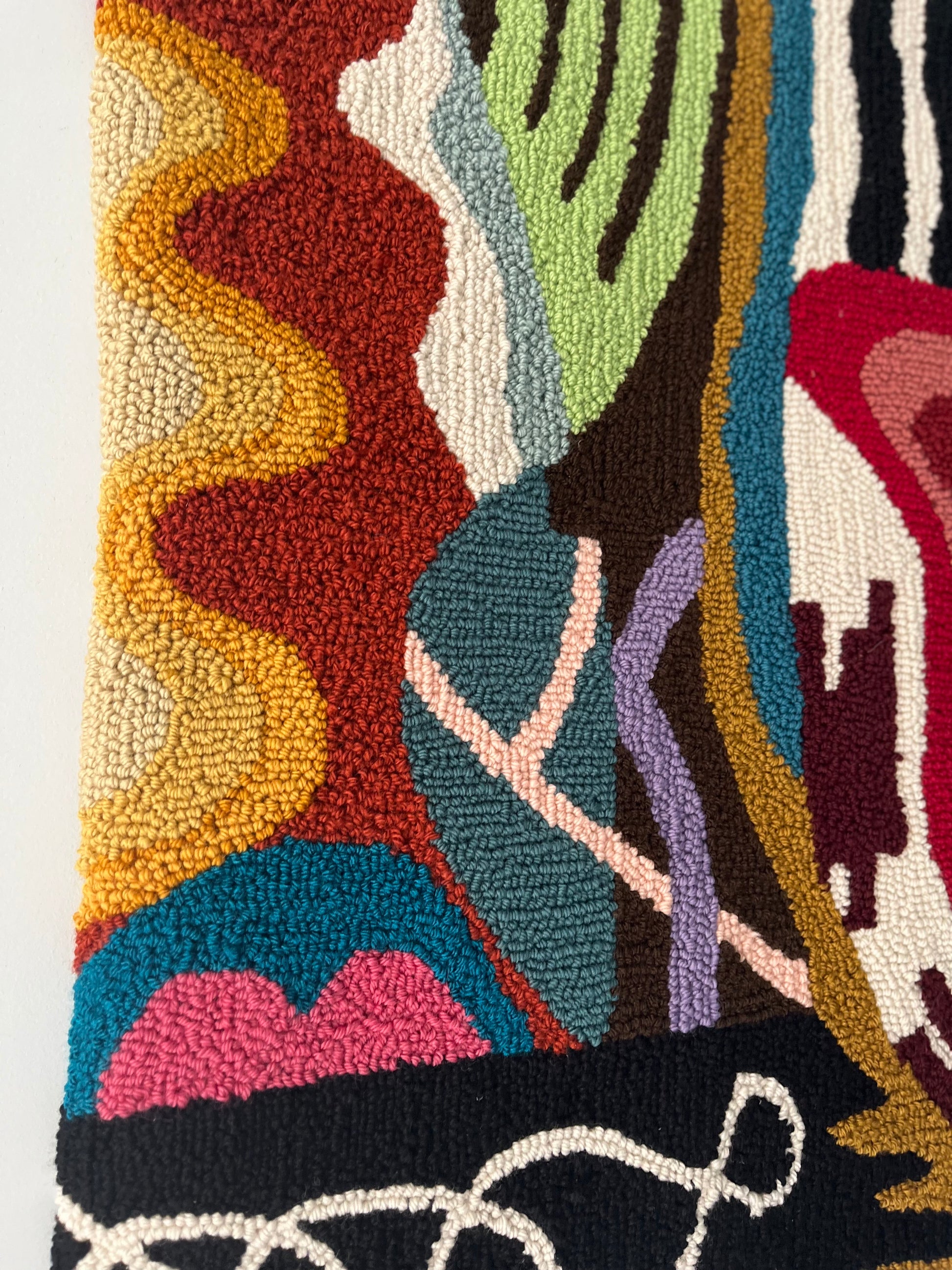 With many colors and shapes inspired by nature. This wall rug conveys my passion for natural elements. All made with the punch needle technique and made in wool.