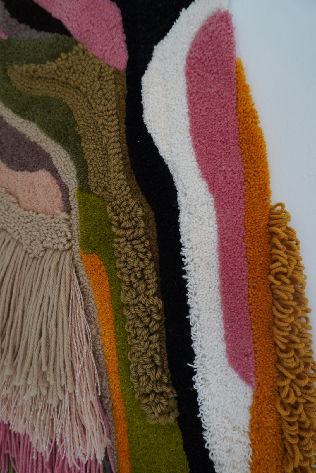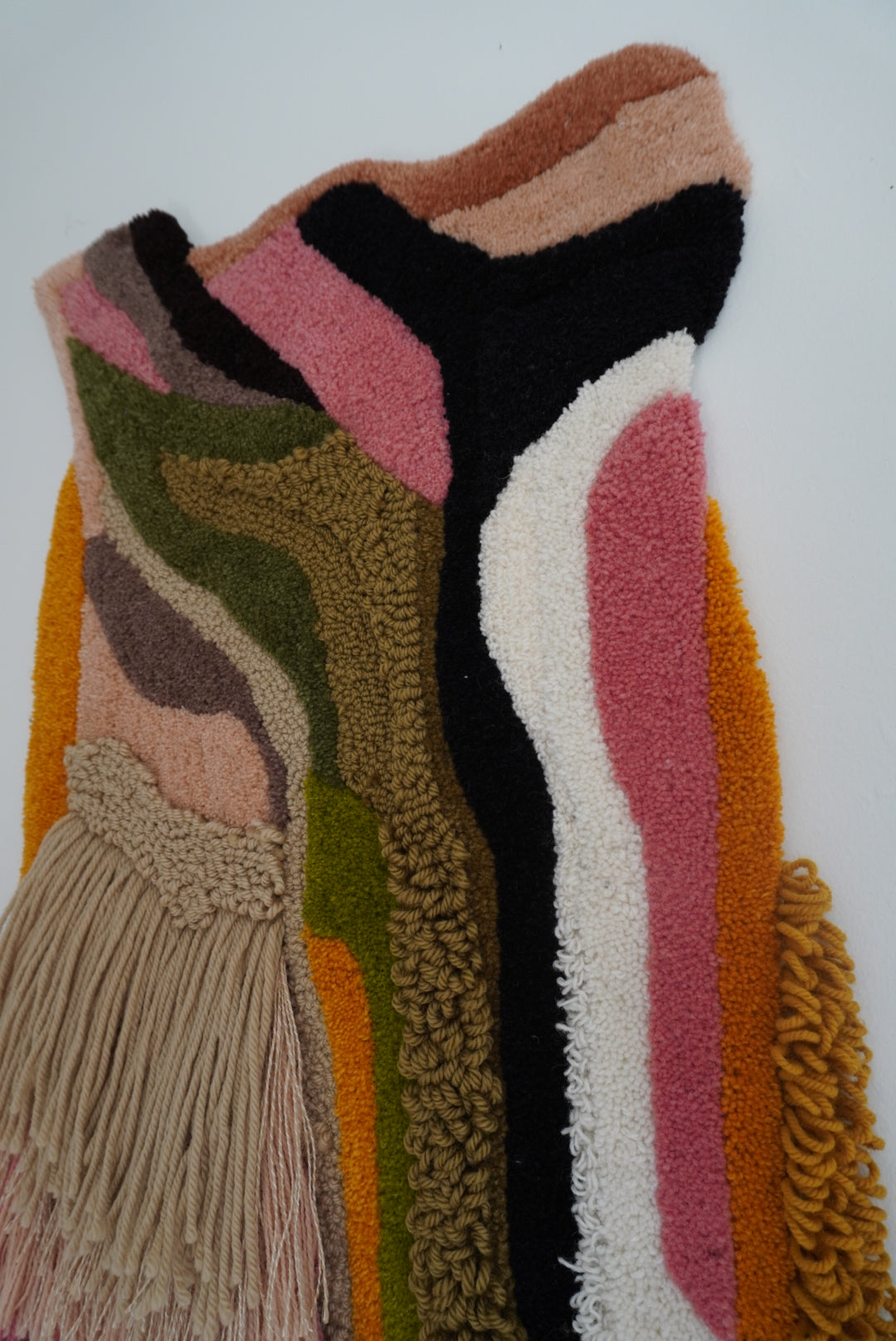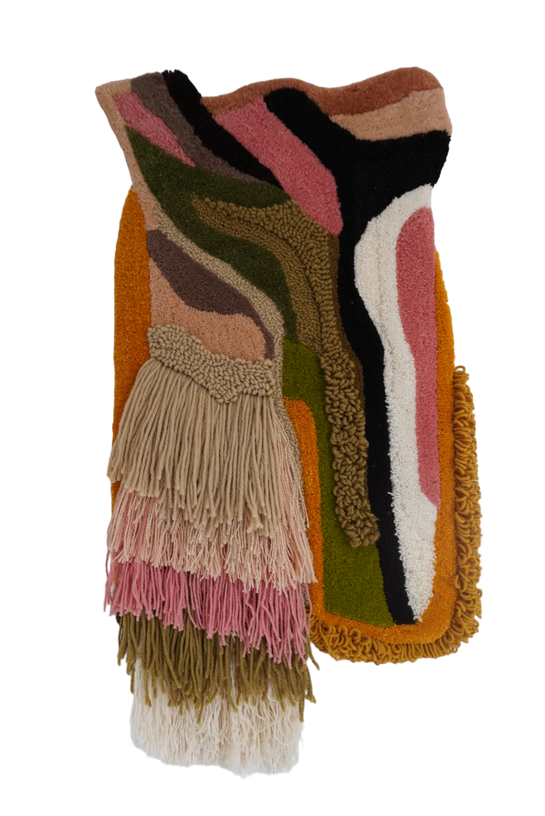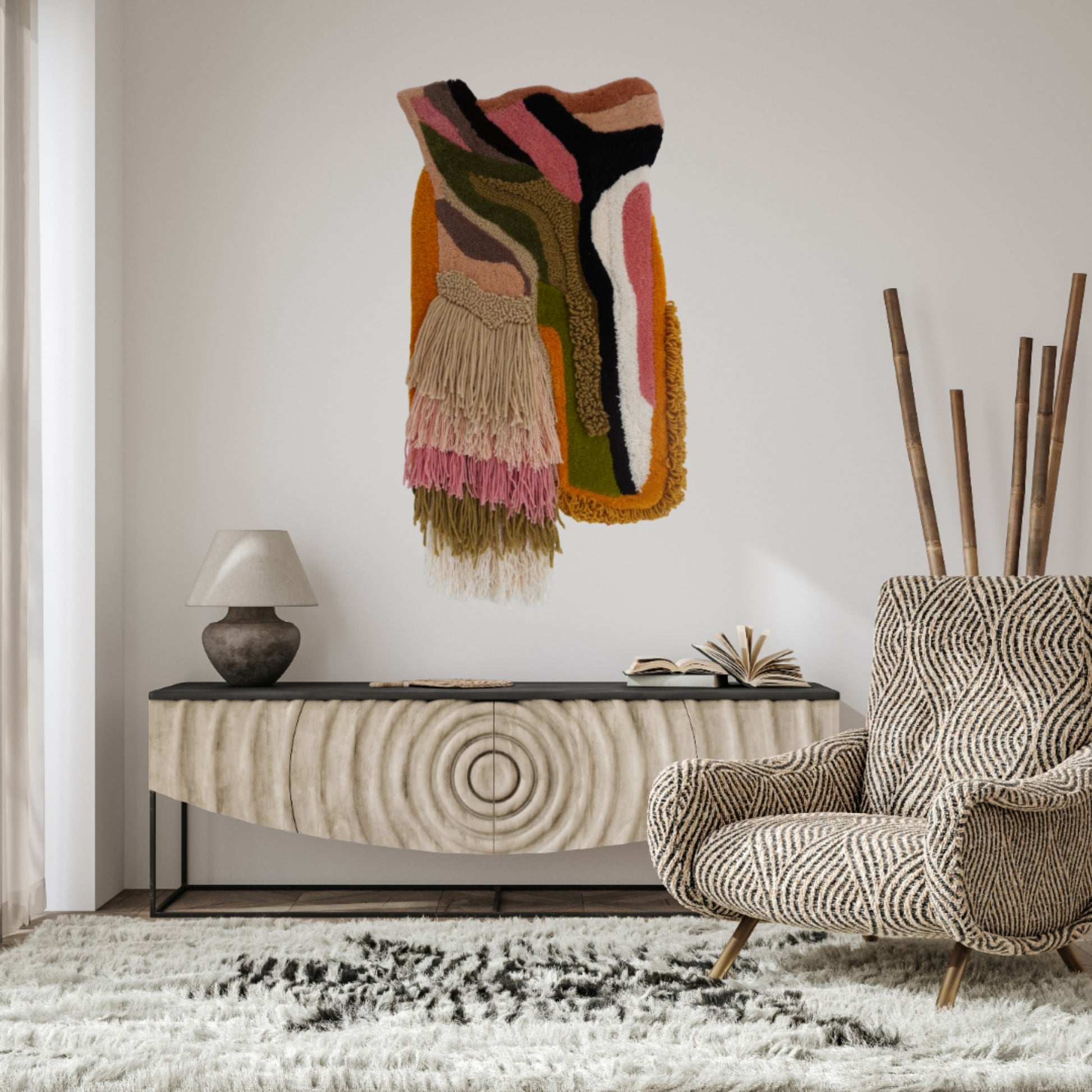 A captivating wall tufting rug that embodies the essence of organic beauty through the use of neutral colors and fluid, natural forms.