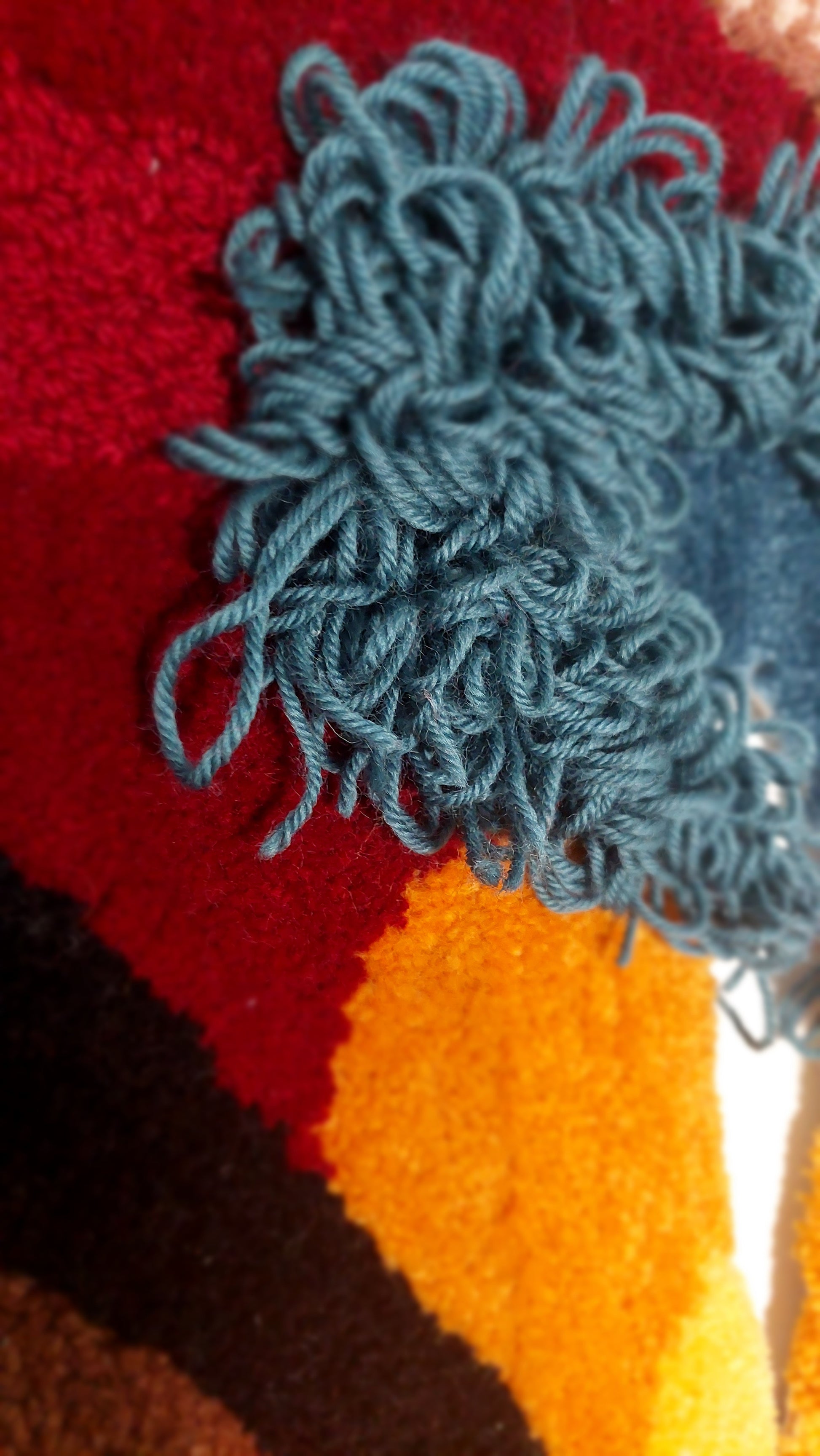Manual tapestry produced in the tufting technique