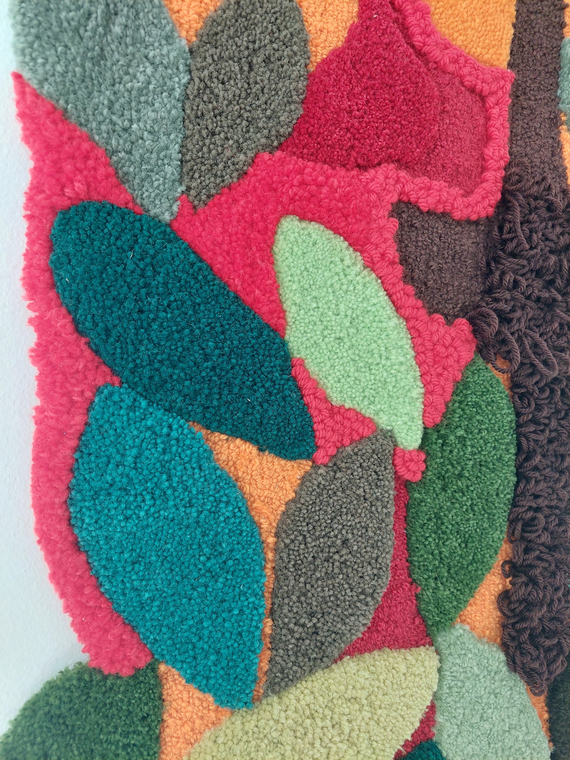 Rustic piece with tracing designs and details of multigreen leaves. I made with wool 100%.